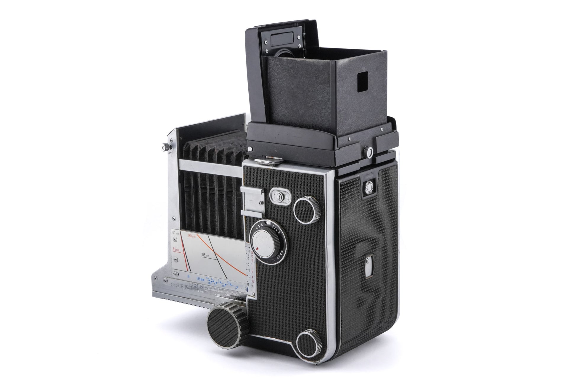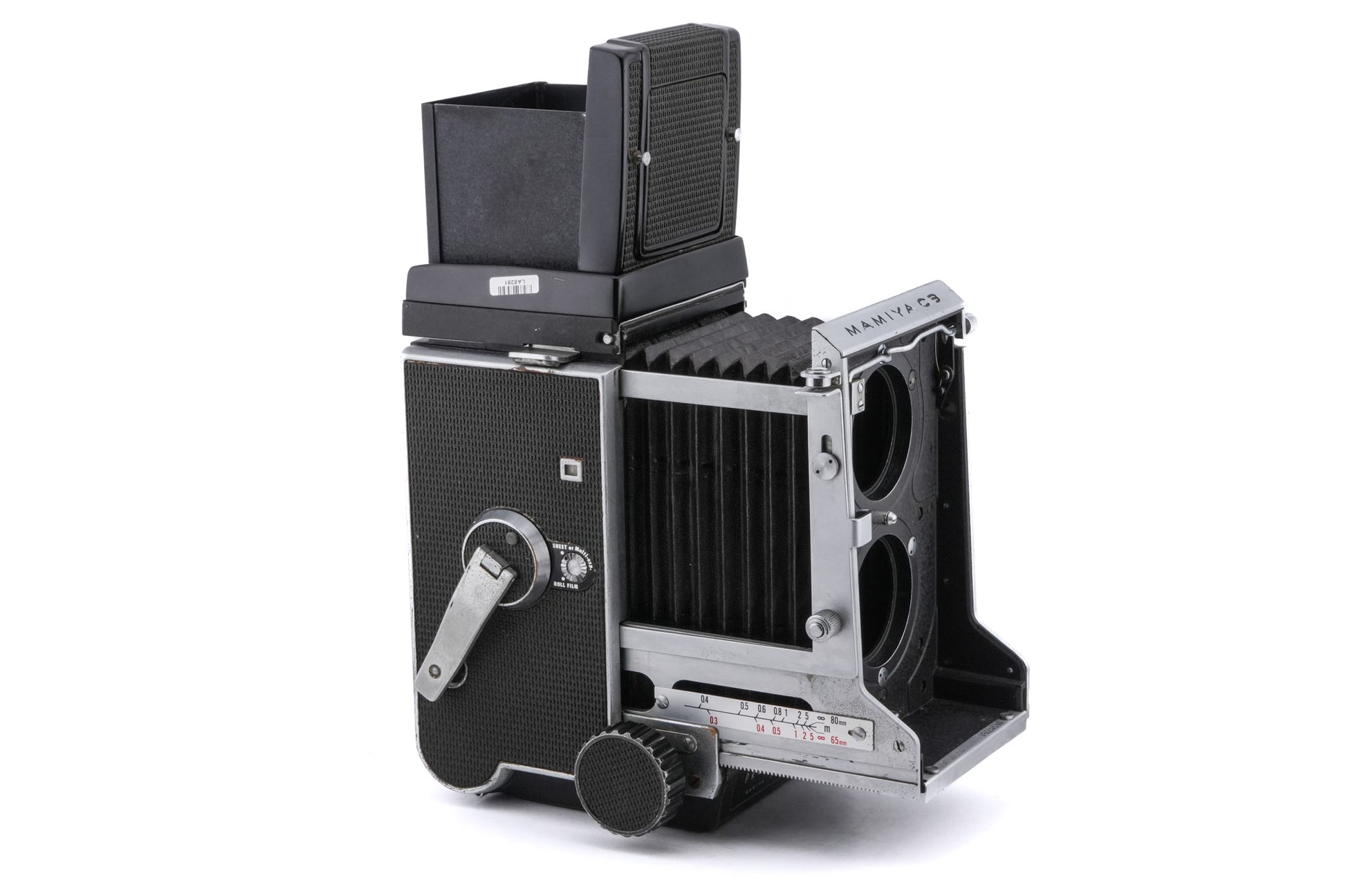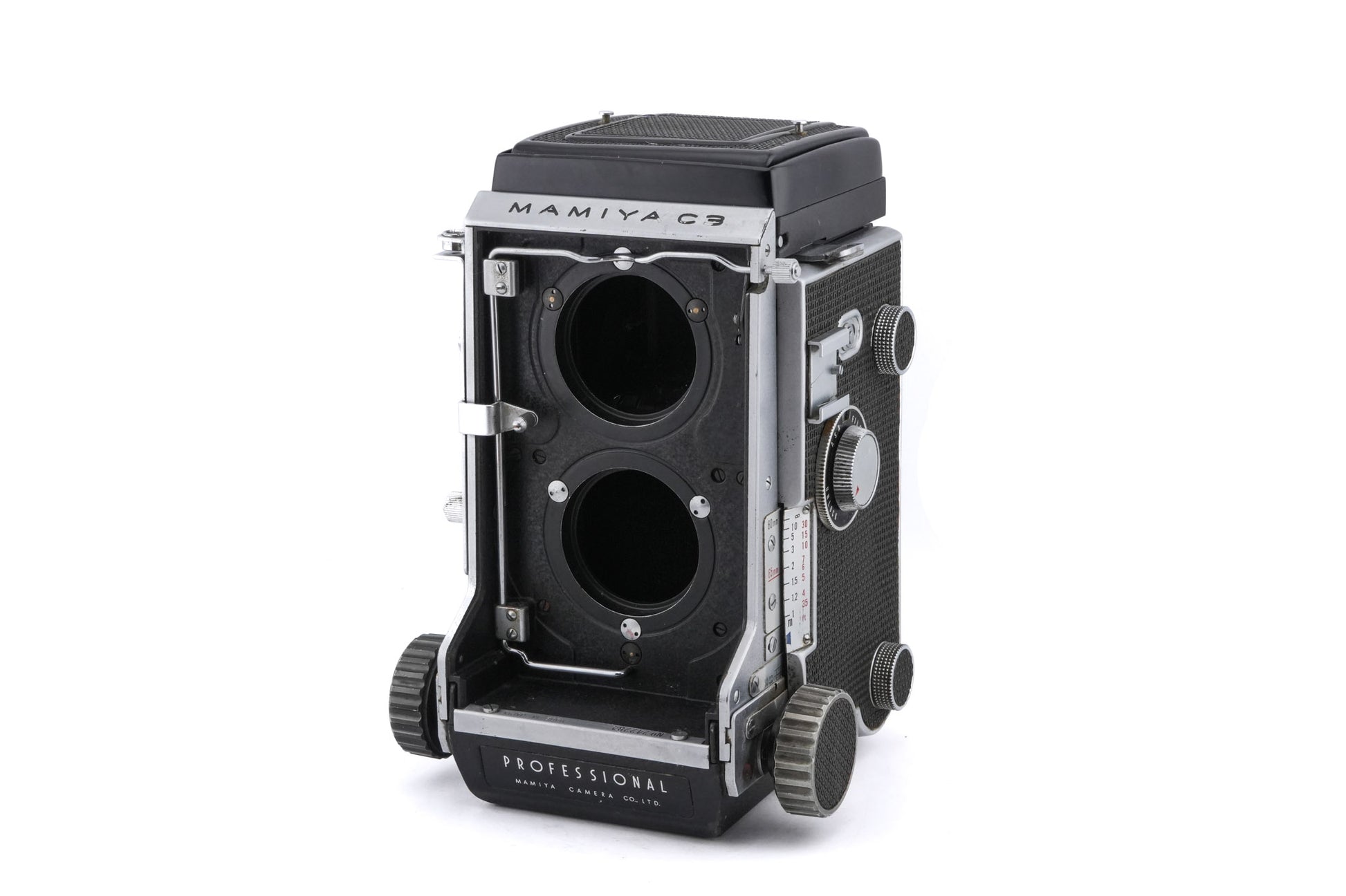 Manual focus 120 6x6 TLR camera introduced by Mamiya in 1962. This was the first Mamiya TLR to not be labeled Mamiyaflex. The shutter must be cocked separately from film advance. Metal body available in silver.