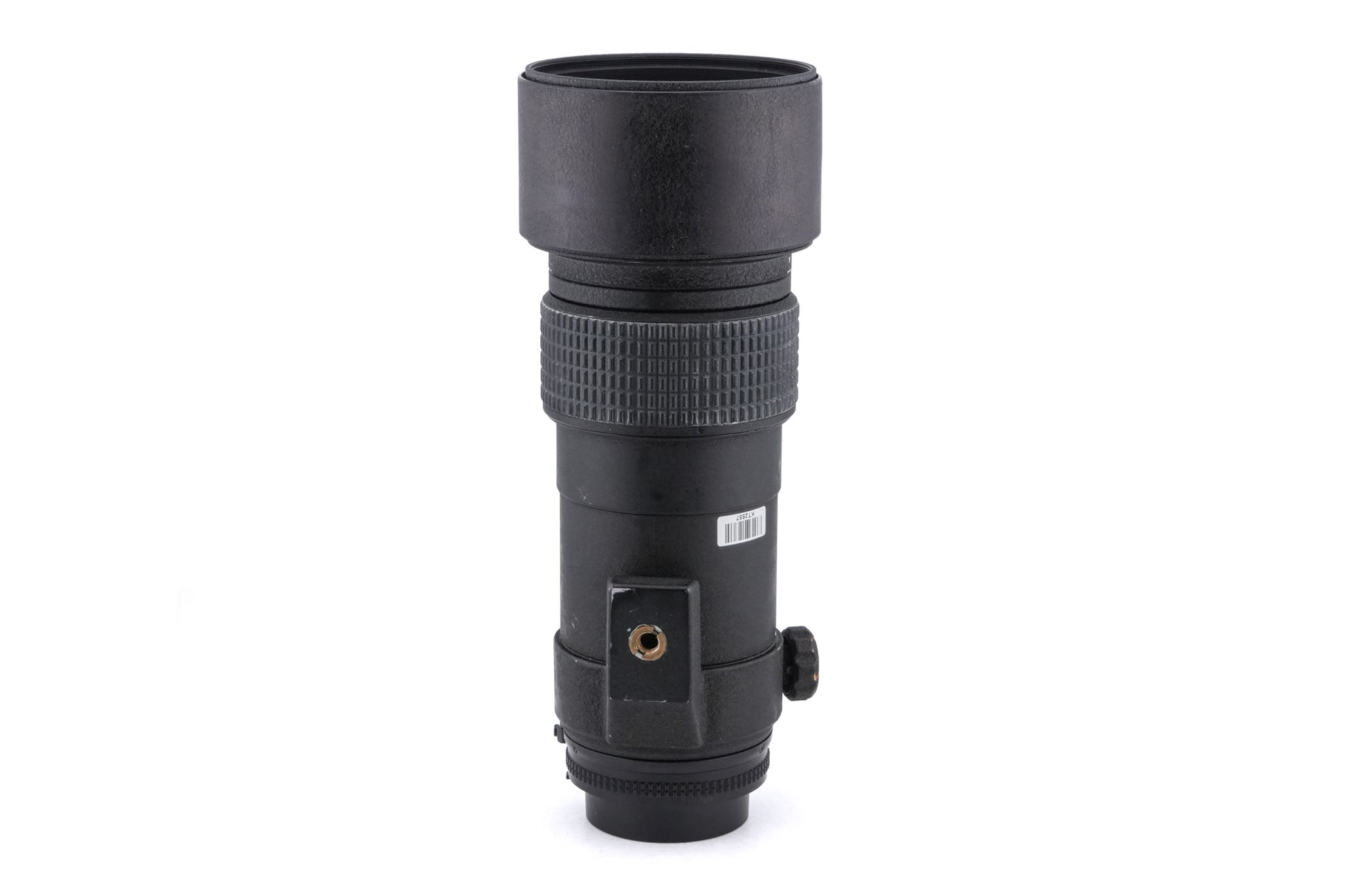 Autofocus telephoto lens made for F-mount SLRs by Nikon. The autofocus requires a body with a built-in screw focus motor. It contains extra-low dispersion (ED) elements to reduce chromatic aberrations. It also has a built-in tripod collar and a slot for drop-in filters. Metal body available in black.