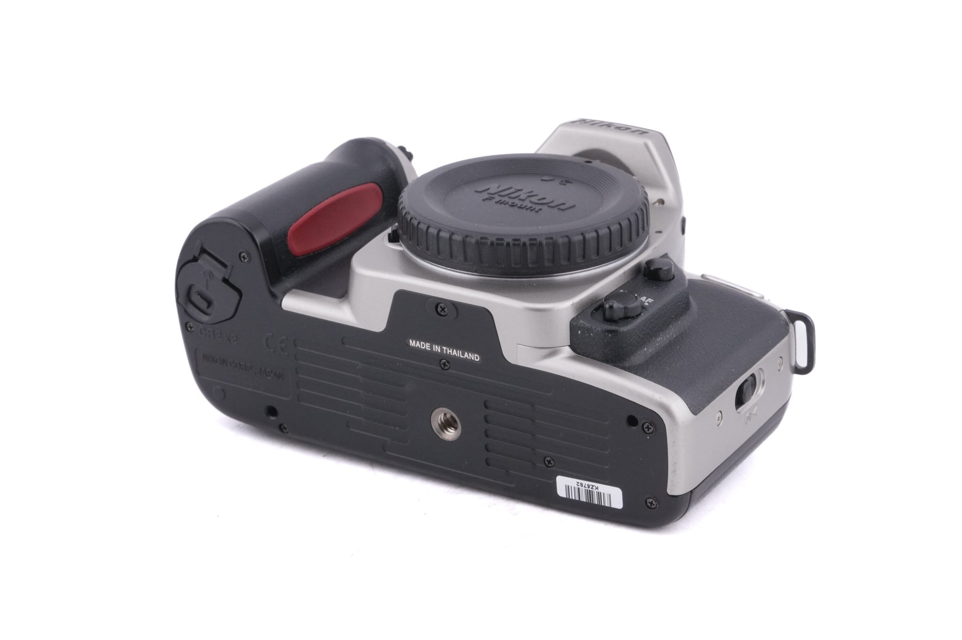 Autofocus F-mount 35mm SLR released by Nikon in 2001. This entry-level camera lacked the AI tab of higher-end models, so it works best with G lenses. It can work with older AF lenses as well as long as the aperture is locked to its minimum number (f.ex f22). The camera has a built-in screw focus motor. Plastic body available in black & champagne.