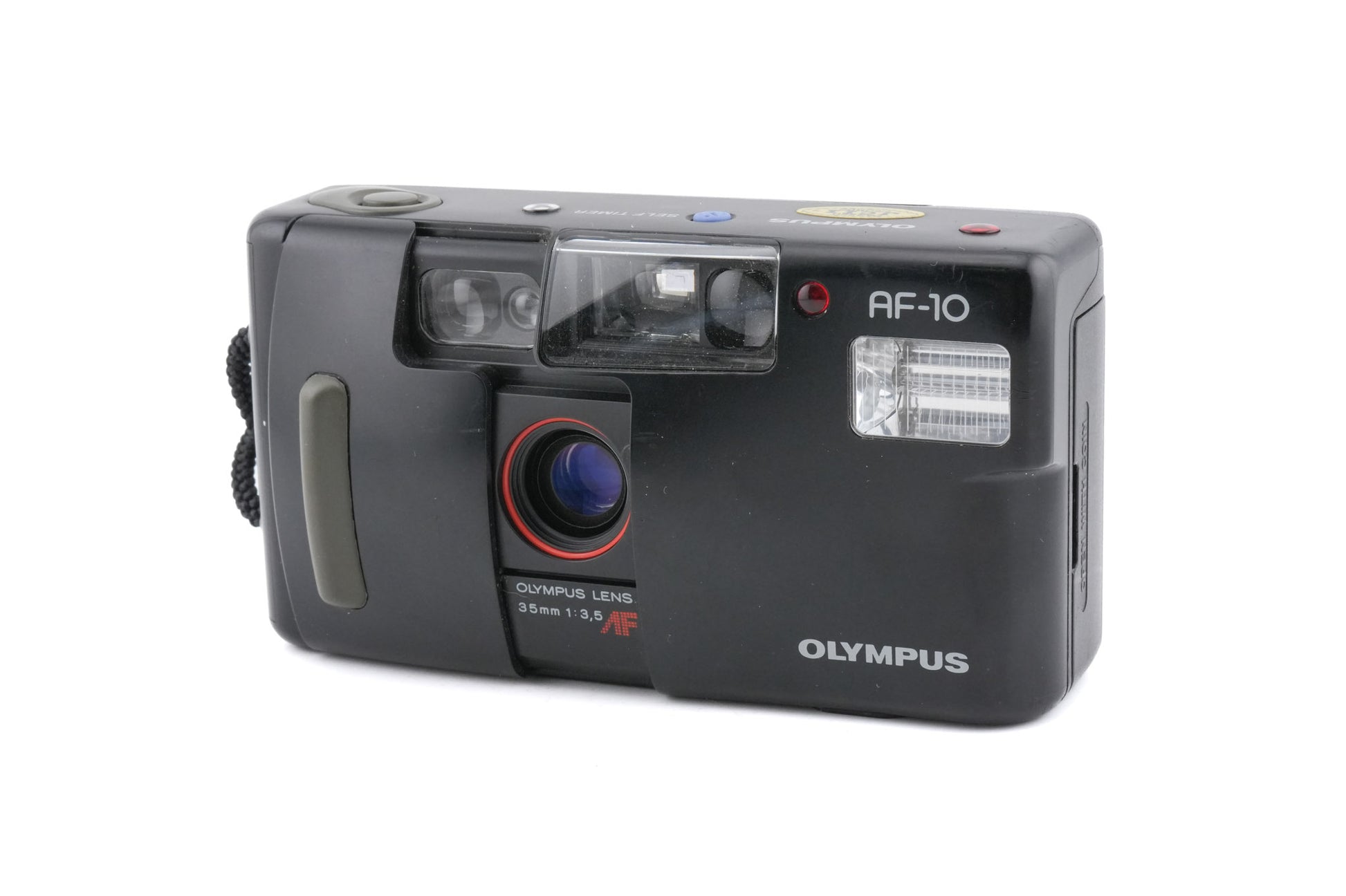 Autofocus 35mm point-and-shoot camera released by Olympus in the late 1980s. Features a sliding clamshell cover, making it and the other AF series cameras like lower-end Mju cameras. Has a self-timer and a built-in light meter. A model with a quartz date back was also made. Plastic body available in black and red.