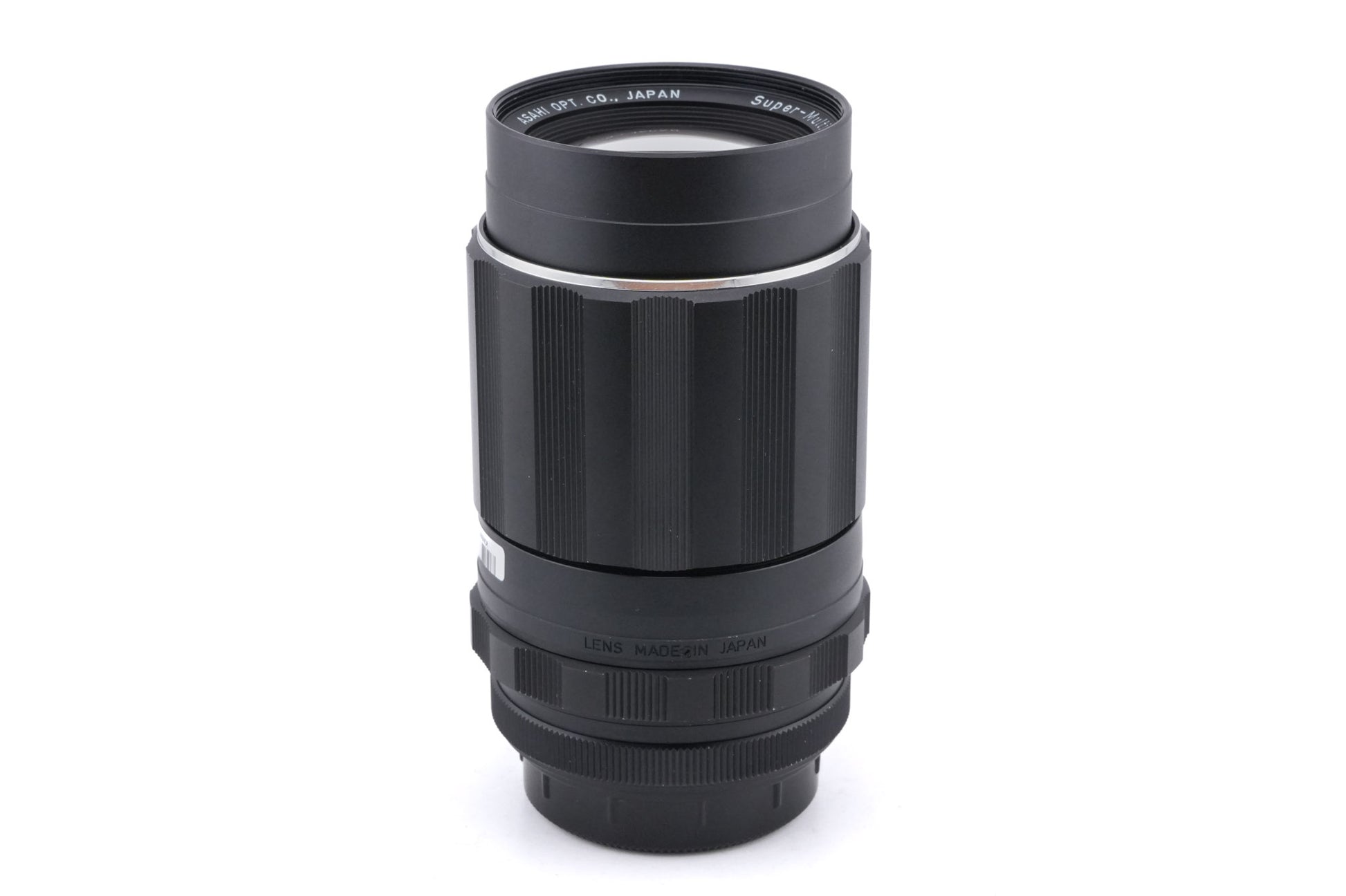 Manual focus telephoto lens made for M42 mount 35mm SLRs by Pentax. This version features an early example of Pentax's SMC coatings. Metal body available in black.