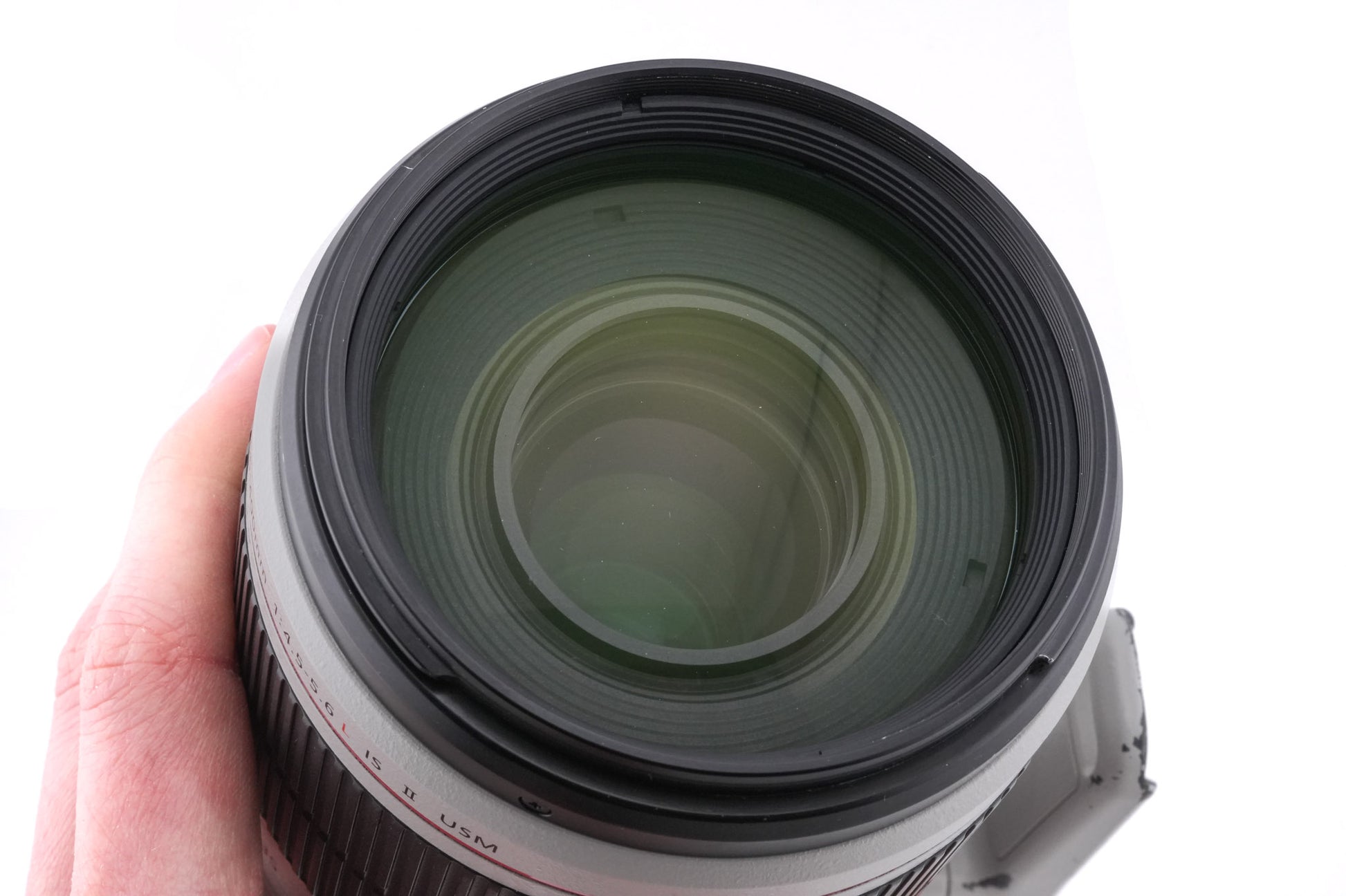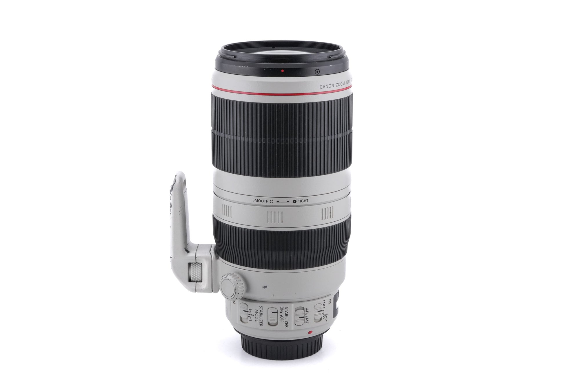 Autofocus telephoto zoom lens made for EF mount SLR cameras by Canon. It is part of their L series of professional lenses and has a weather-sealing gasket. It also has an image stabilizer (IS) and uses an ultrasonic motor (USM) for autofocus. Plastic/metal body available in beige.
