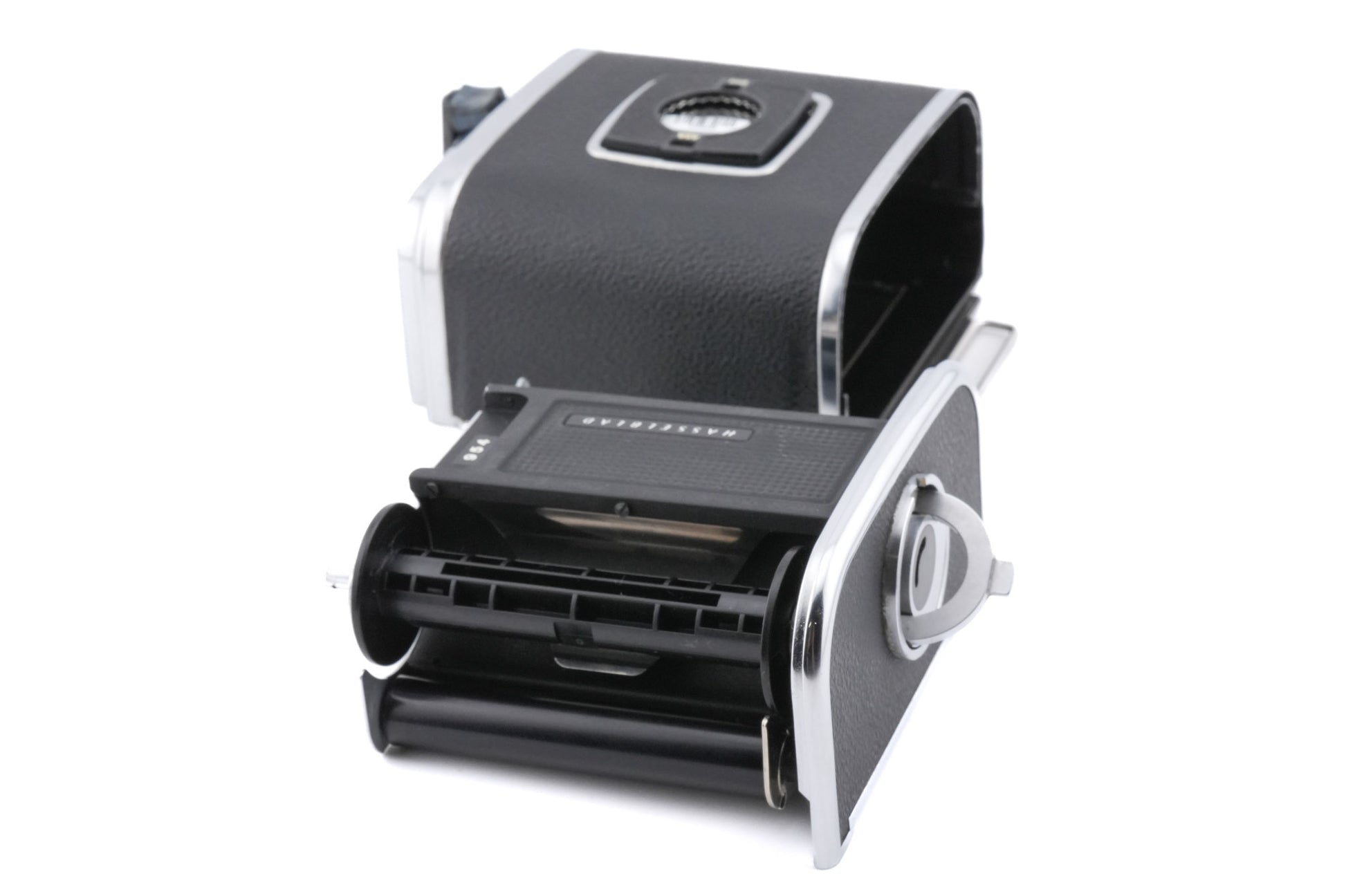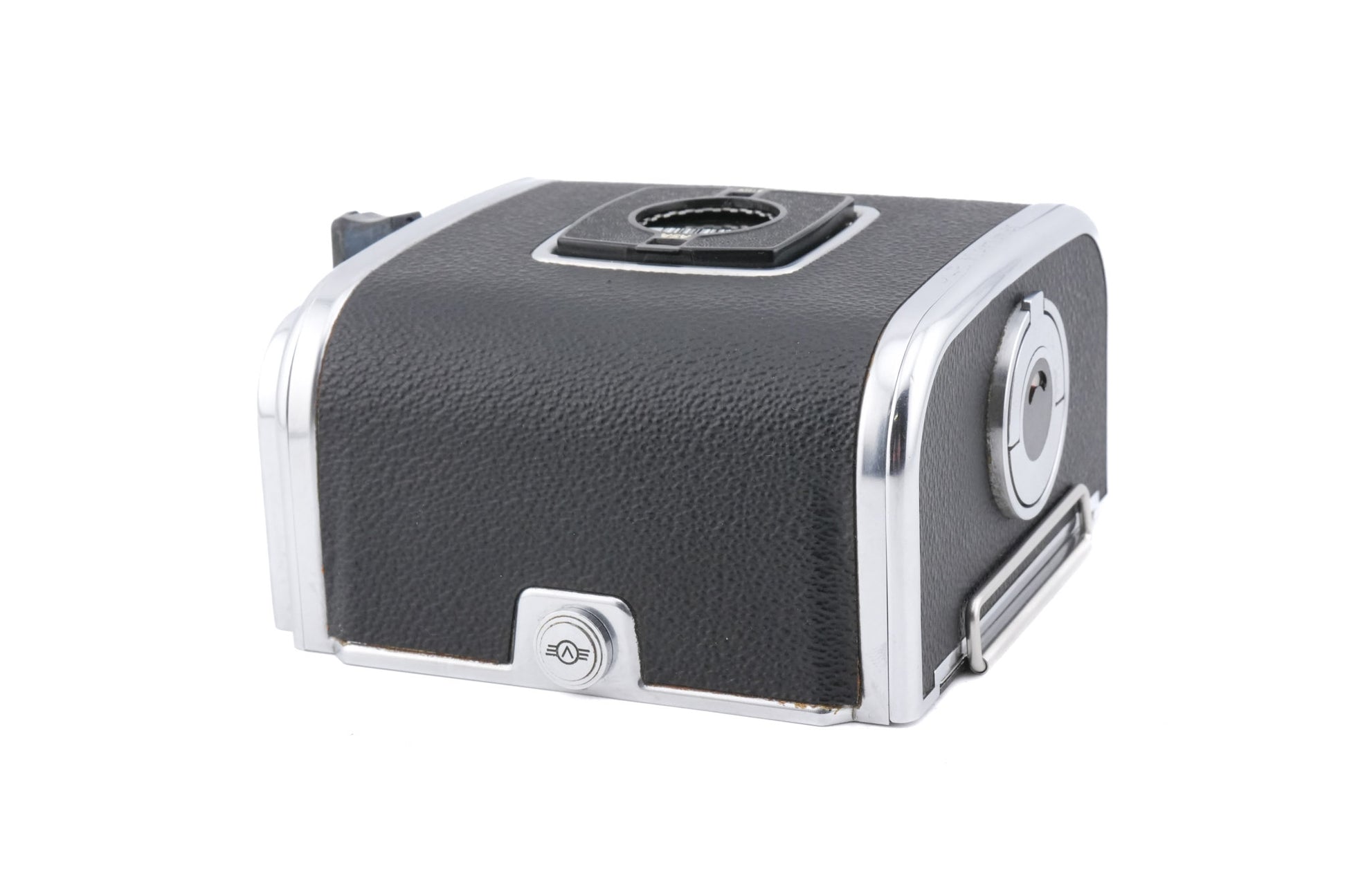 120 film magazine released for V system 120 SLRs by Hasselblad in 1968. This design improved over the previous C12 magazine by adding a winding crank to improve loading speed and an automatic system for stopping at the first frame. The back window was also removed. Exposes 12 6x6 frames on one roll of 120 film. Originally chrome, but became available in black in 1973.