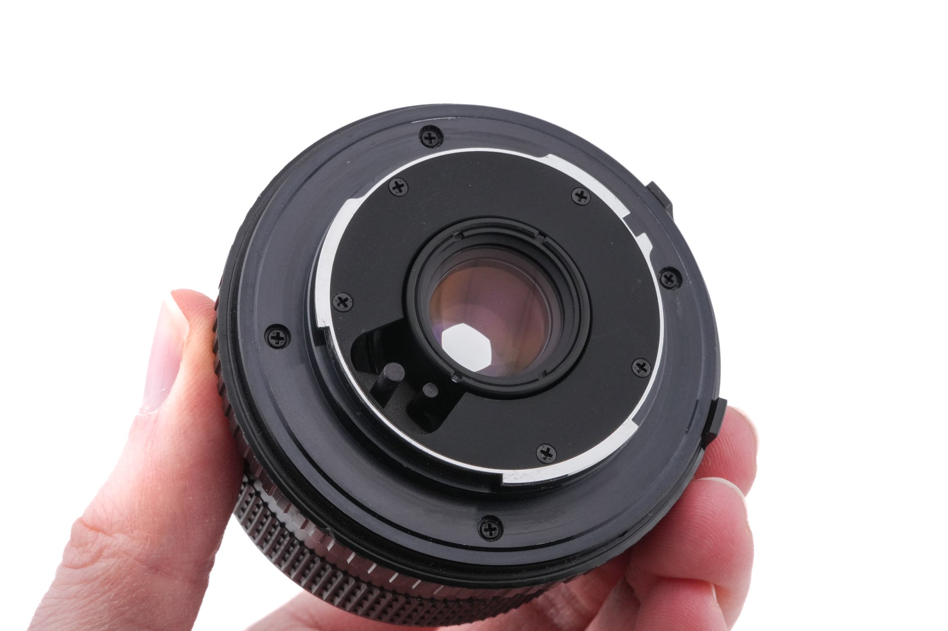 Manual focus wide-angle lens made for MD/SR-mount 35mm SLRs by Minolta starting in 1977. Metal body available in black.