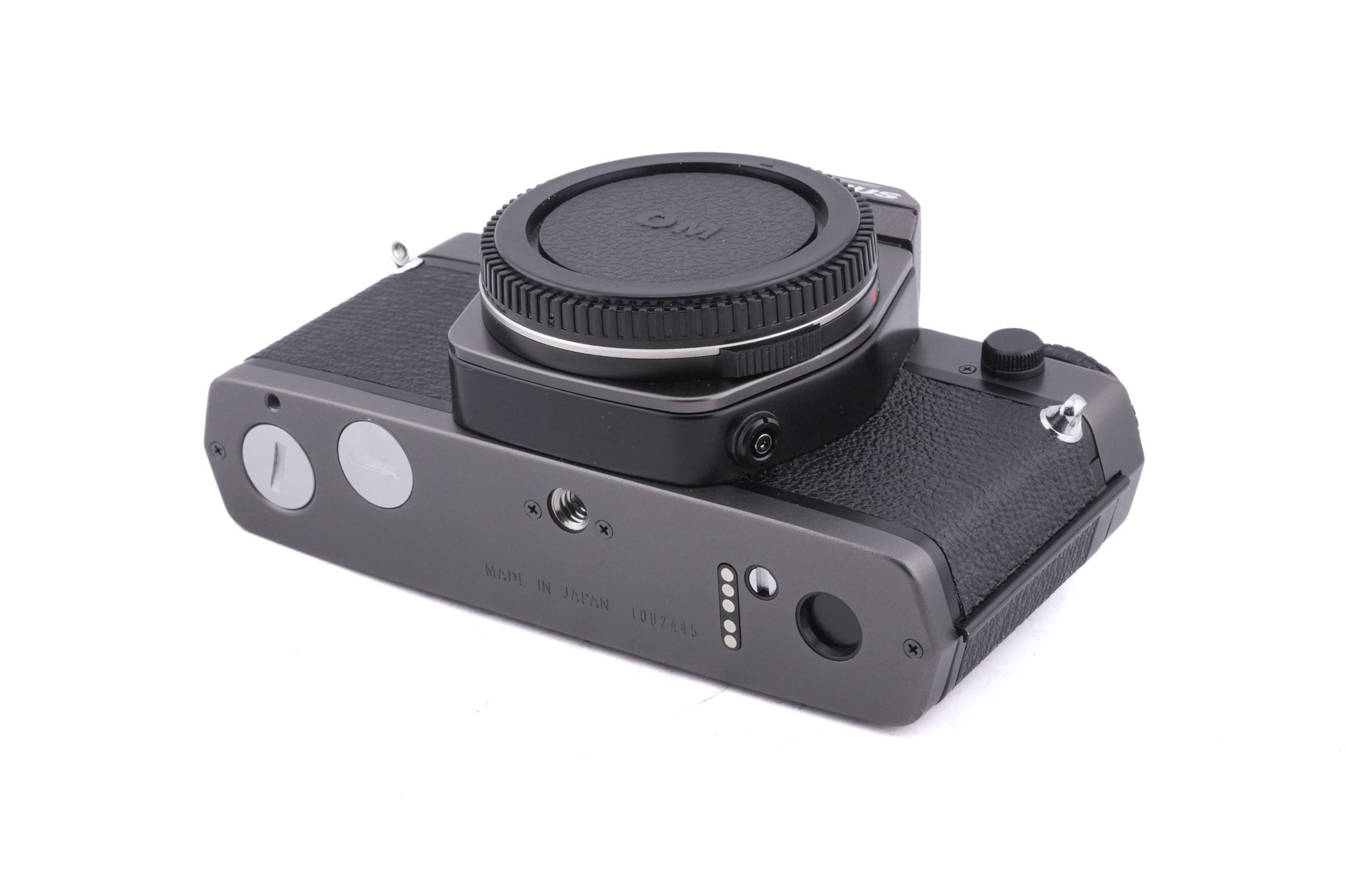 Manual focus OM mount 35mm SLR released by Olympus in 1995. This release came after a near-decade drought of mechanical SLRs from Olympus after the discontinuation of the OM-3 in 1986. It features similar multi-spot metering modes found in the OM-3 and OM-4. Battery drain issues were also improved from the OM-3. Titanium body available in gray.
