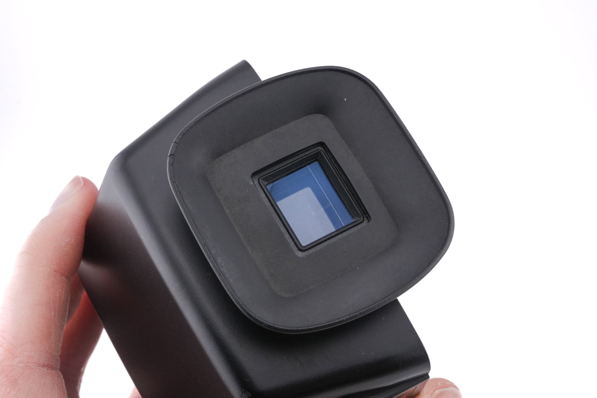 Metered prism finder made for the Bronica GS system introduced by Zenza Bronica. It provides a 90° eye-level view. It has a built-in TTL light meter. Metal and plastic body available in black.
