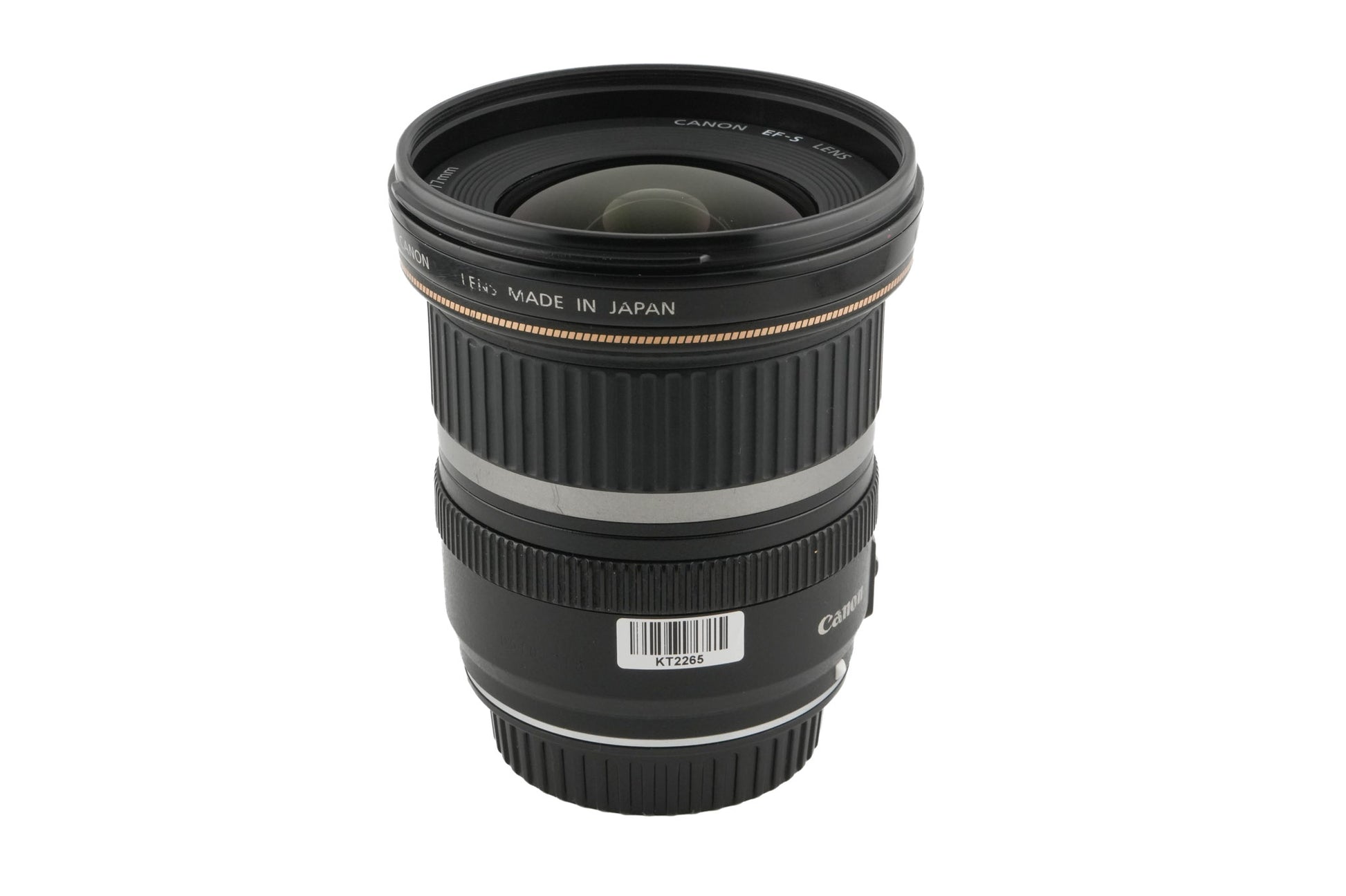Autofocus wide-angle zoom lens made for EF-S-mount digital SLRs by Canon in 2005. It is designed for APS-C-sized sensors and gives the equivalent field of view to a 15-33mm lens on full frame/35mm. It uses an ultrasonic focusing motor (USM) for autofocus. Plastic and metal body available in black.