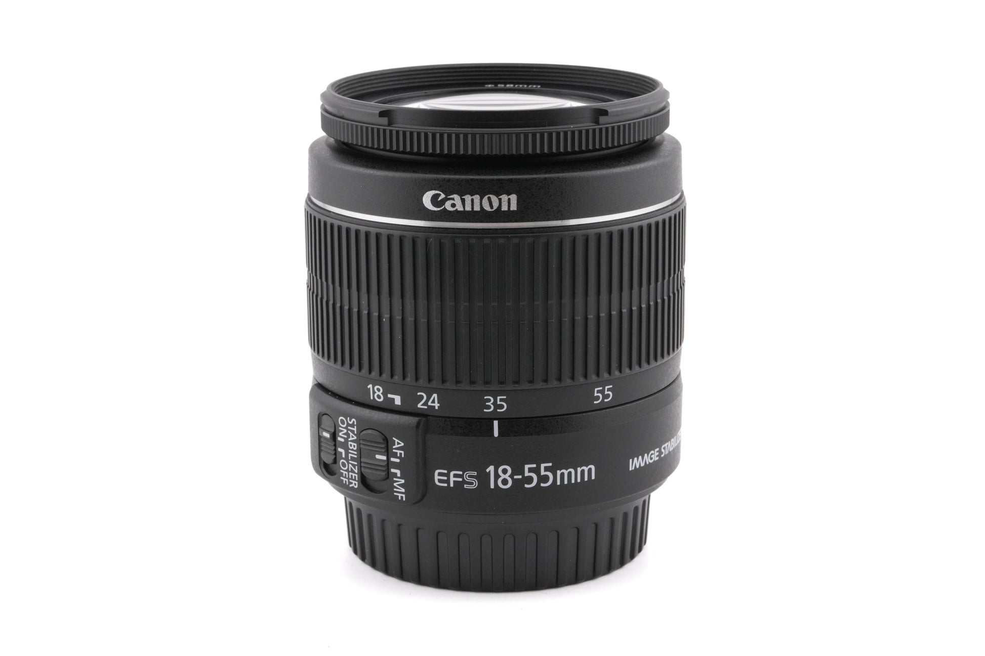 Autofocus zoom lens made for EF-S mount digital SLRs by Canon. It gives the equivalent field of view to a 27-82.5mm lens on full frame/35mm. This is the second EF-S kit lens that has image stabilization (IS). Plastic body available in black.