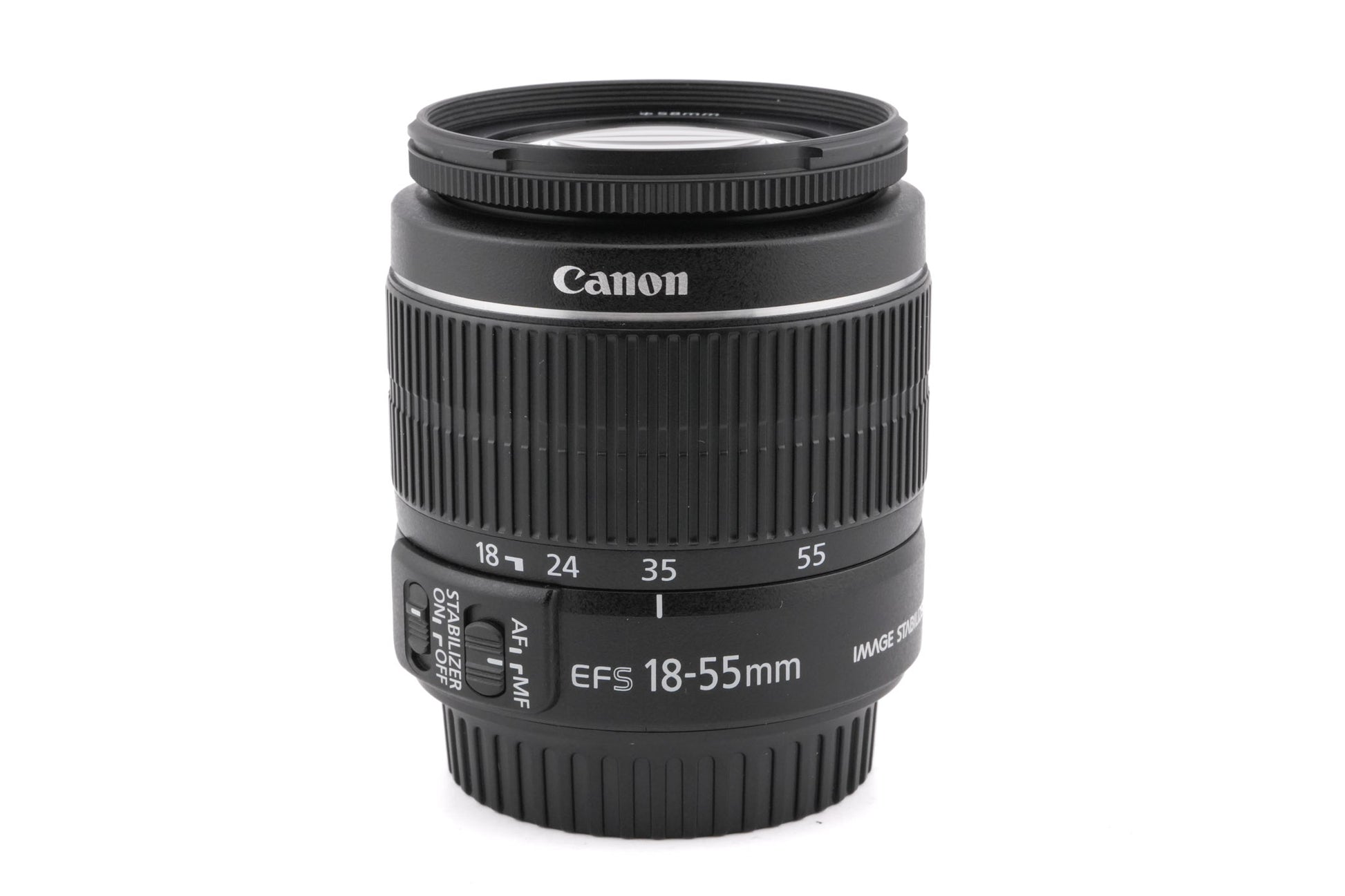Autofocus zoom lens made for EF-S mount digital SLRs by Canon. It gives the equivalent field of view to a 27-82.5mm lens on full frame/35mm. This is the second EF-S kit lens that has image stabilization (IS). Plastic body available in black.