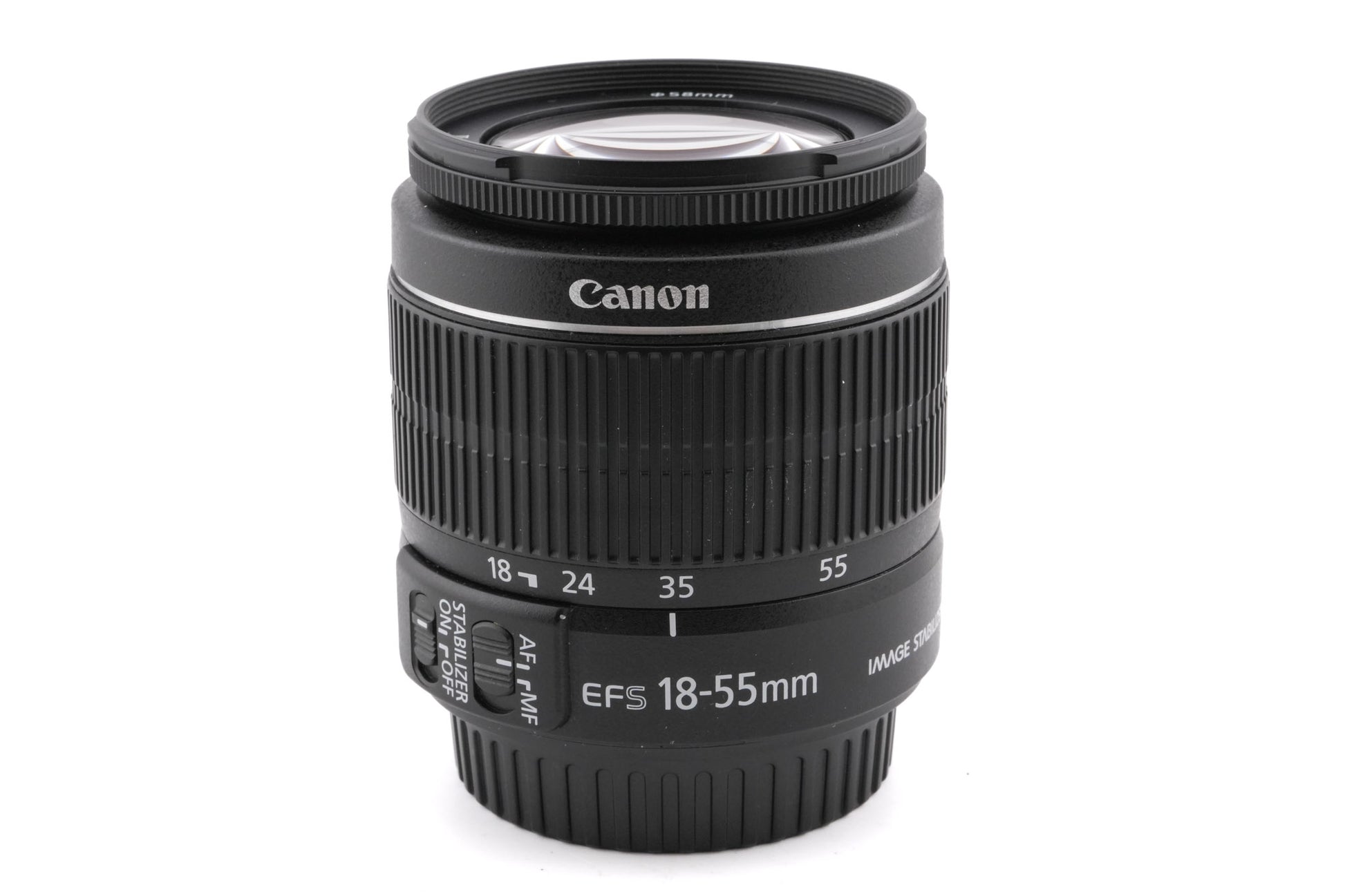 Autofocus zoom lens made for EF-S mount digital SLRs by Canon. It gives the equivalent field of view to a 27-82.5mm lens on full frame/35mm. This is the second EF-S kit lens that has image stabilization (IS). Plastic body available in black.