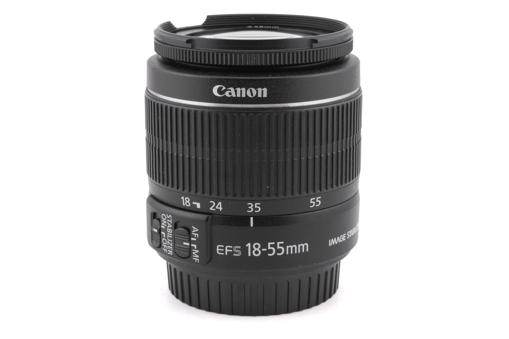 Autofocus zoom lens made for EF-S mount digital SLRs by Canon. It gives the equivalent field of view to a 27-82.5mm lens on full frame/35mm. This is the second EF-S kit lens that has image stabilization (IS). Plastic body available in black.