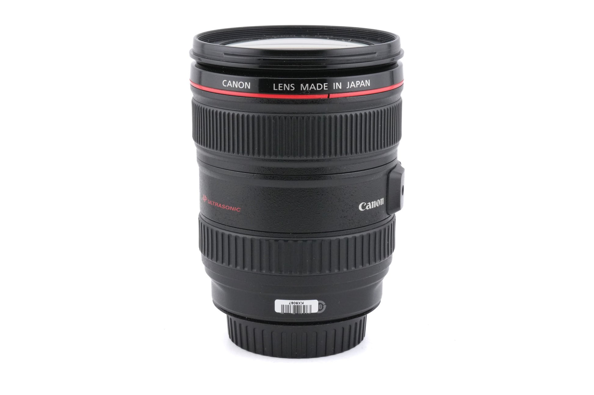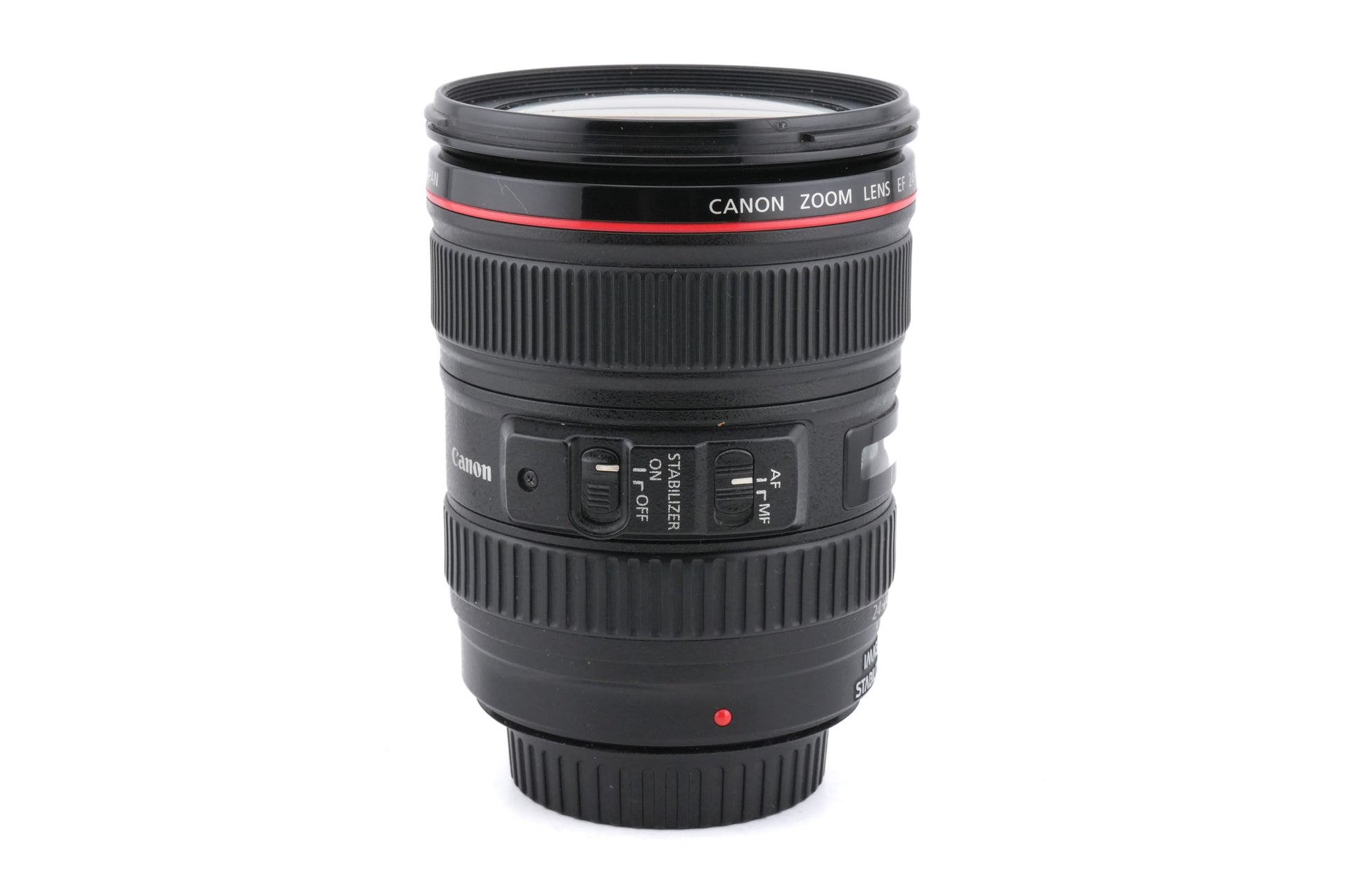 Autofocus standard zoom lens made for EF-mount SLR cameras by Canon starting in 2005. It's part of their L series of professional lenses and has a weather-sealing gasket. It has built-in image stabilization (IS) and uses an ultrasonic motor (USM) for autofocus. Plastic and metal body available in black.
