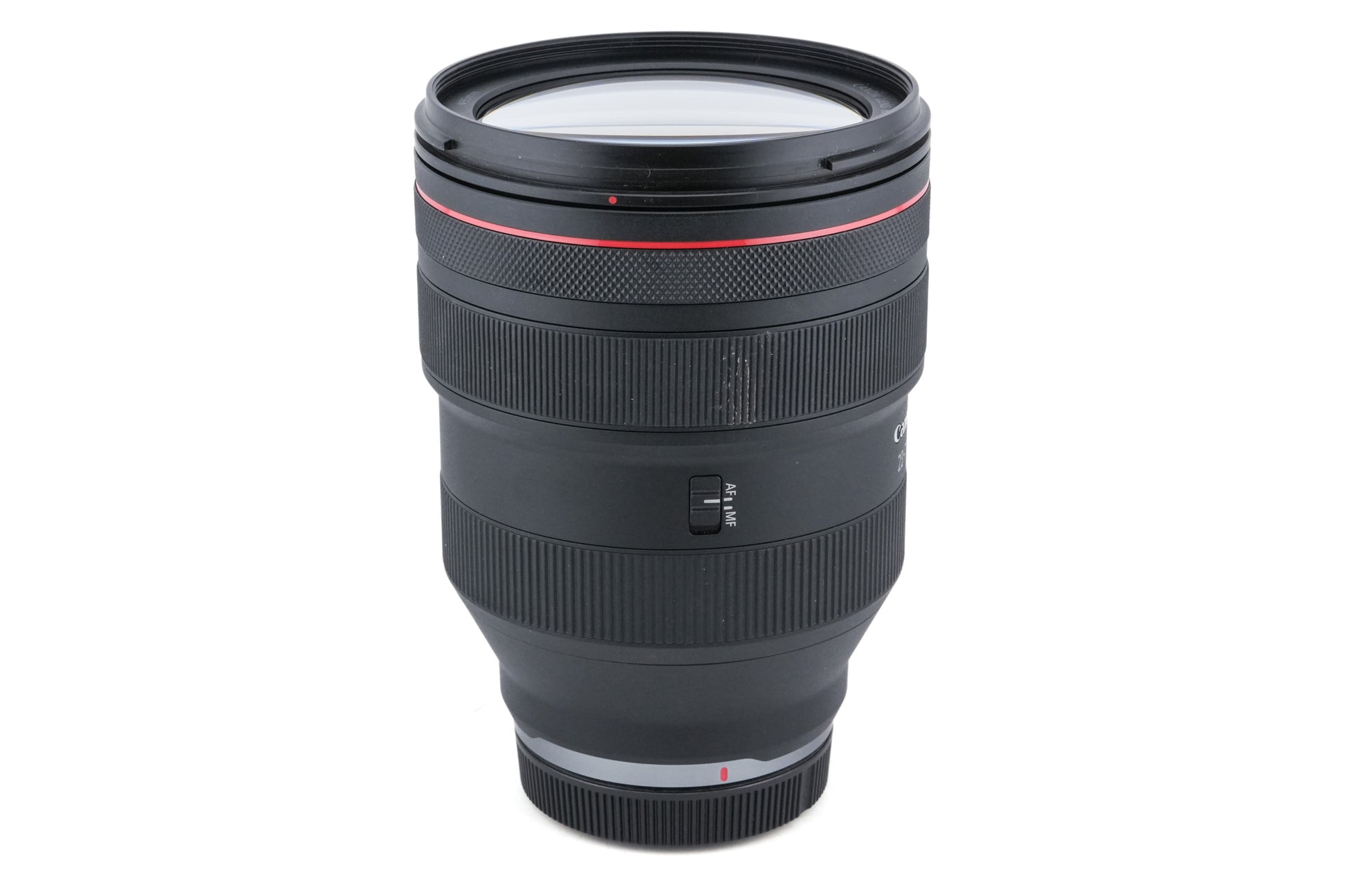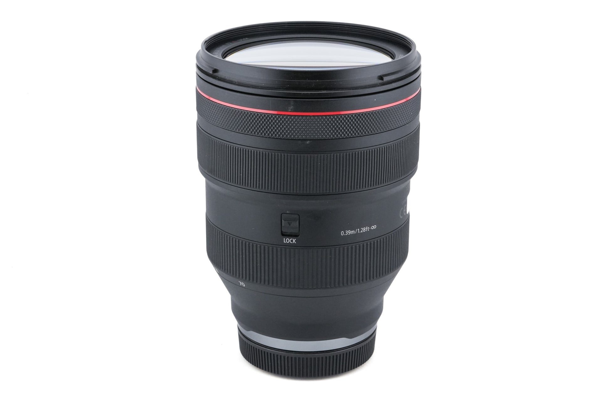 Autofocus zoom lens made for RF-mount digital mirrorless cameras introduced by Canon. It's part of their L series of professional lenses and, like other RF lenses, has a third ring that can be programmed to adjust a variety of settings. Metal and plastic body available in black.