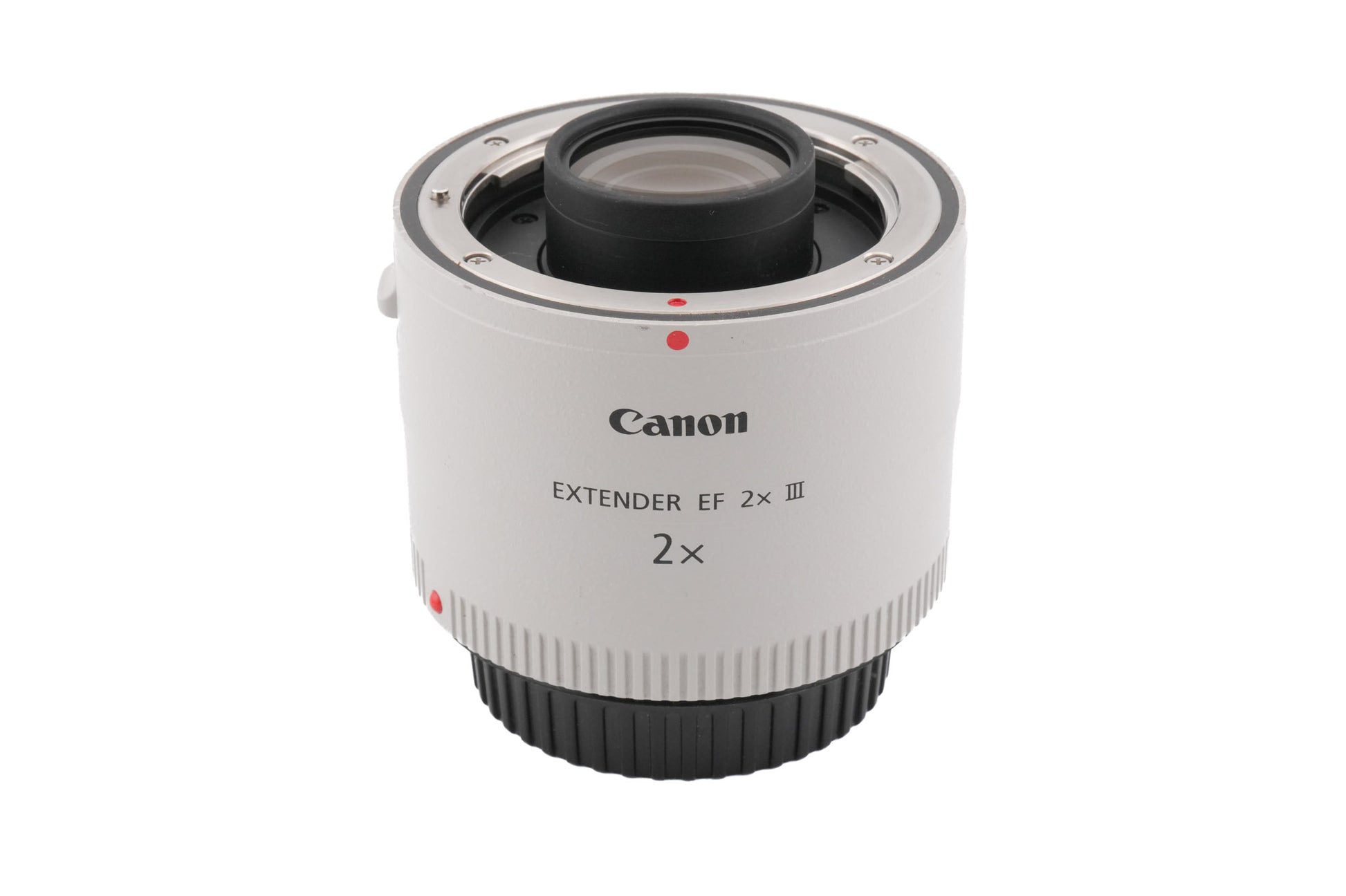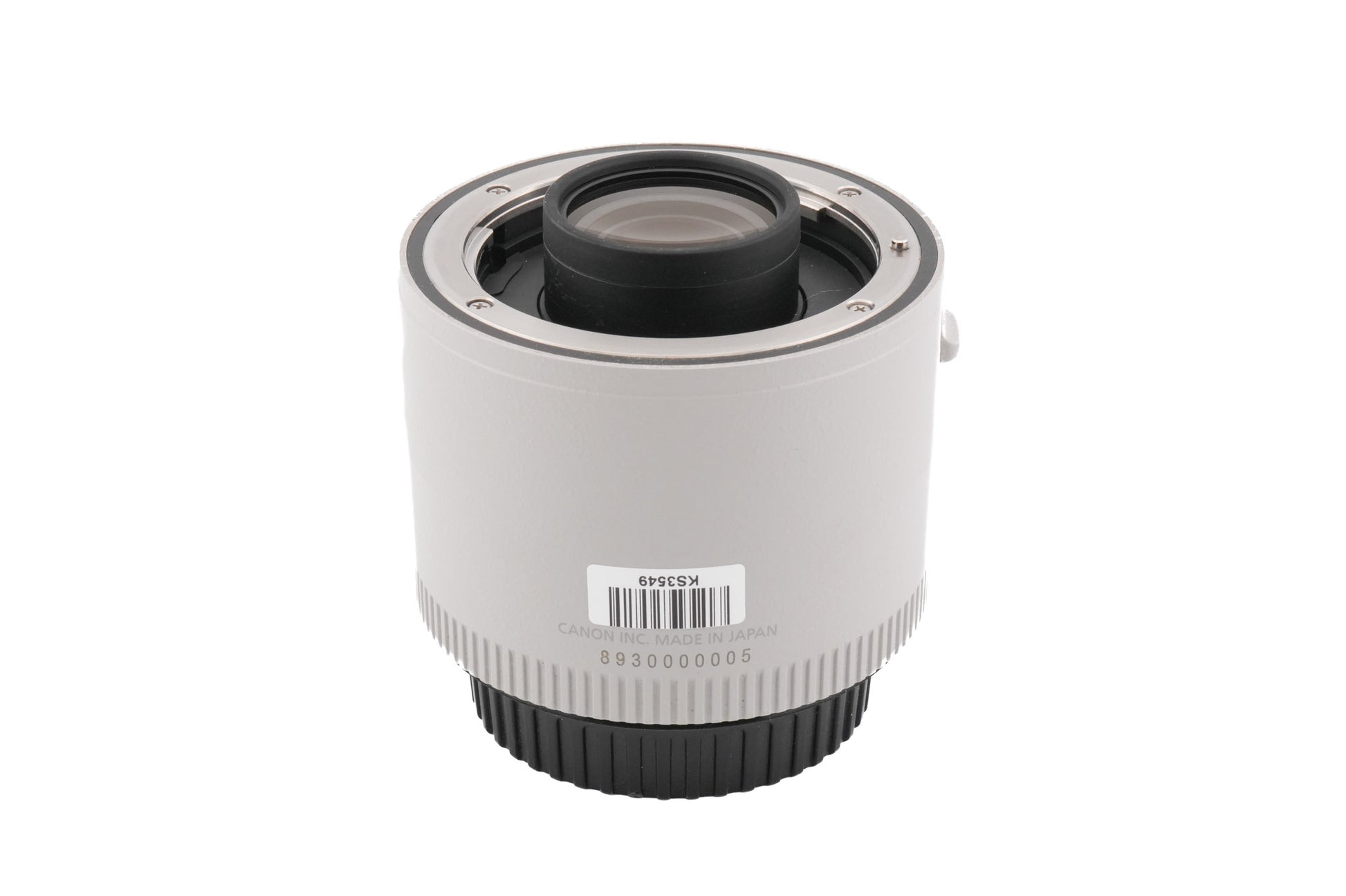 Teleconverter made for EF-mount SLRs by Canon. It works with most L-series lenses and doubles the focal length of a lens at the cost of 2 stops of light transmission. Autofocus only works with lenses that have an aperture of f2.8 or wider. Metal and plastic body available in black and gray.