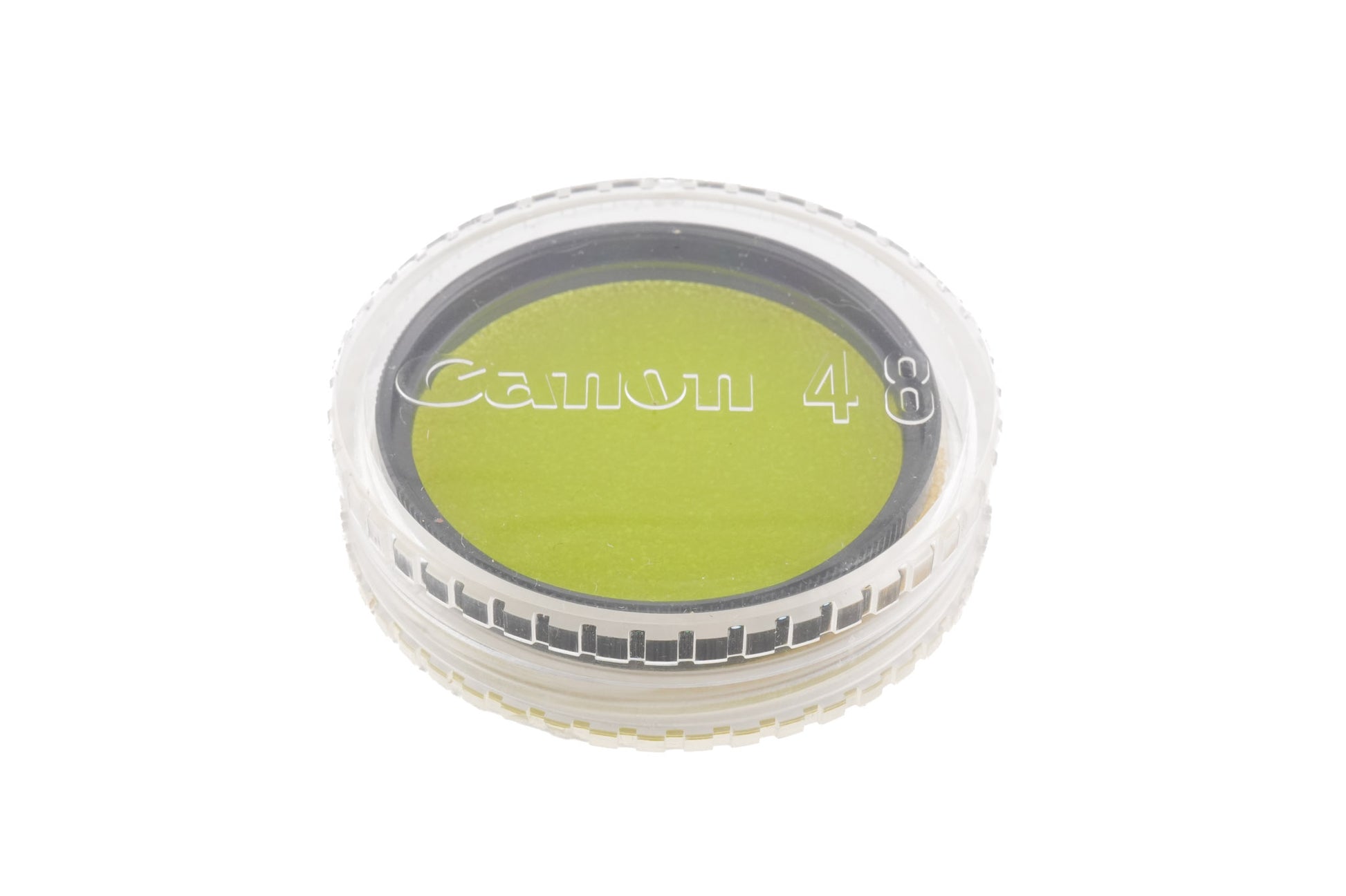 Green filter made by Canon for all lenses with 48mm filter threads. Affects contrast in black & white photography. Metal body available in black.