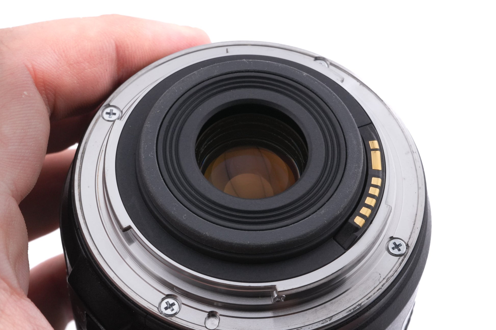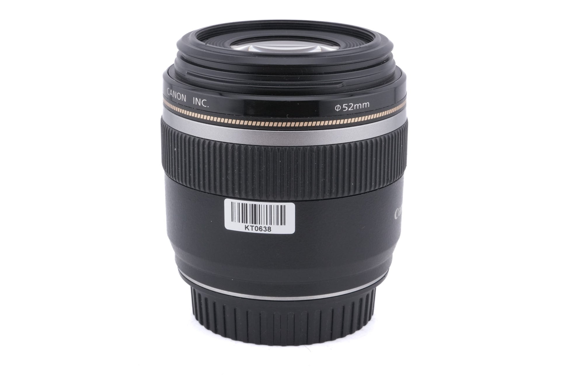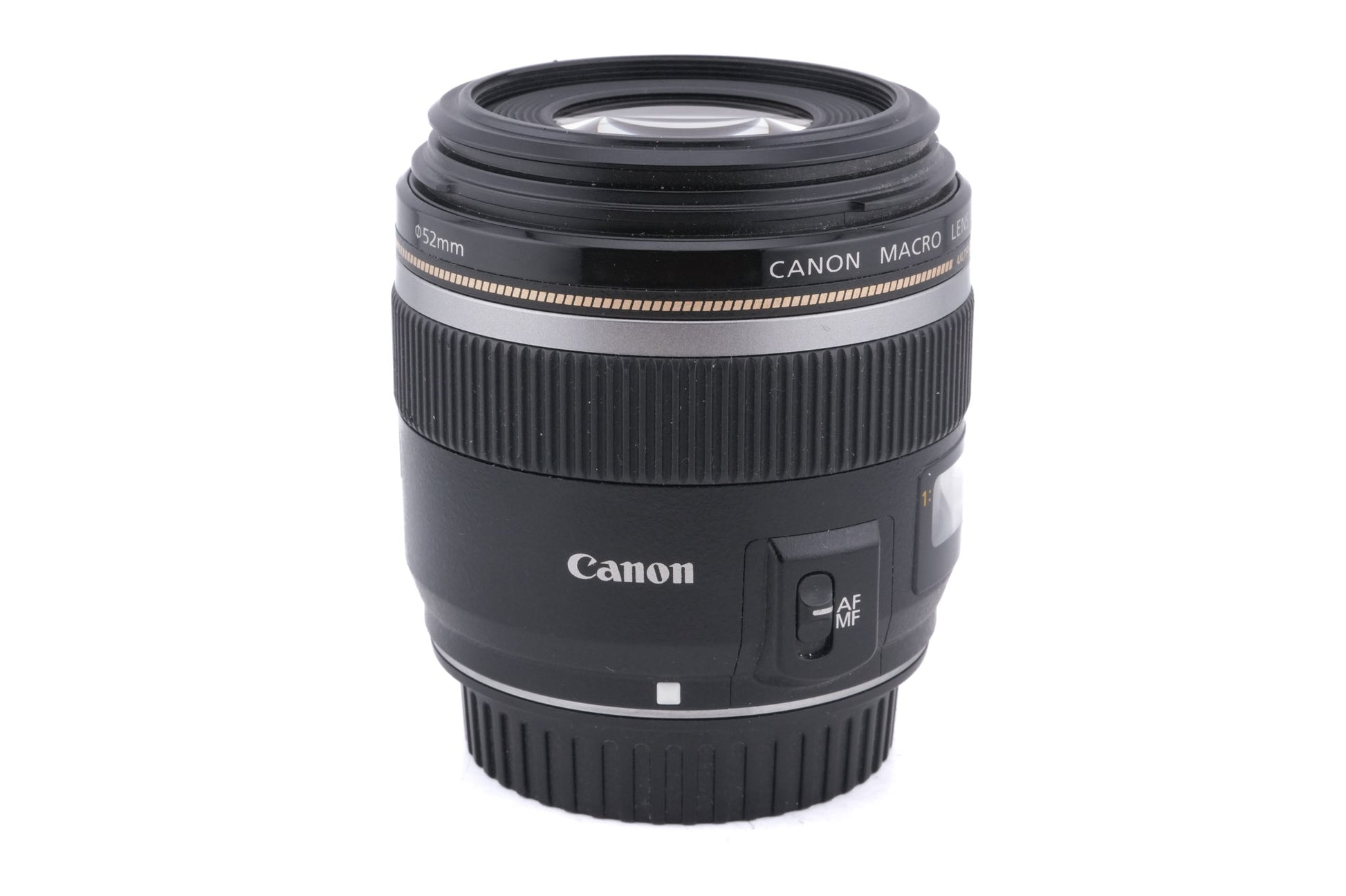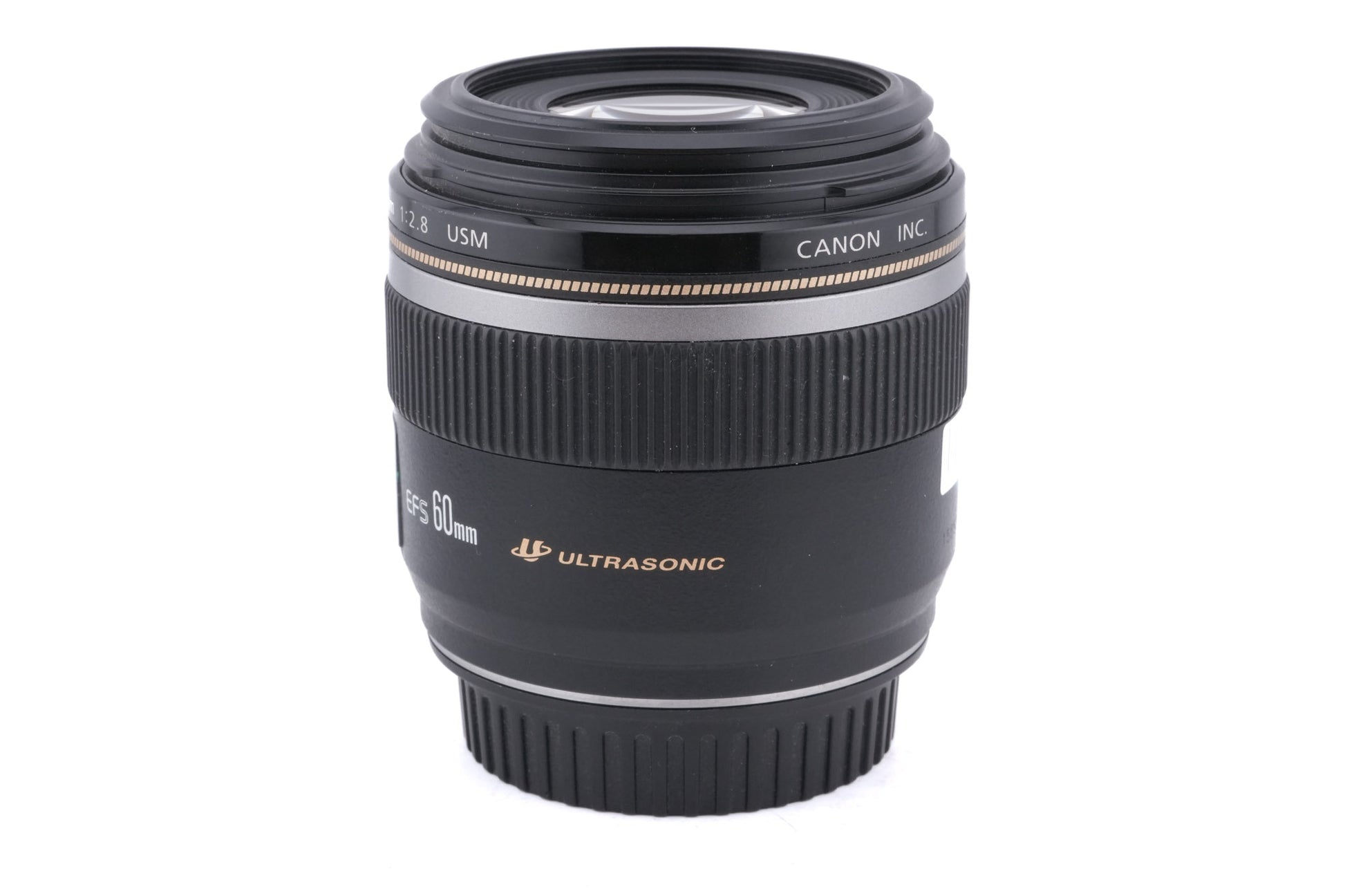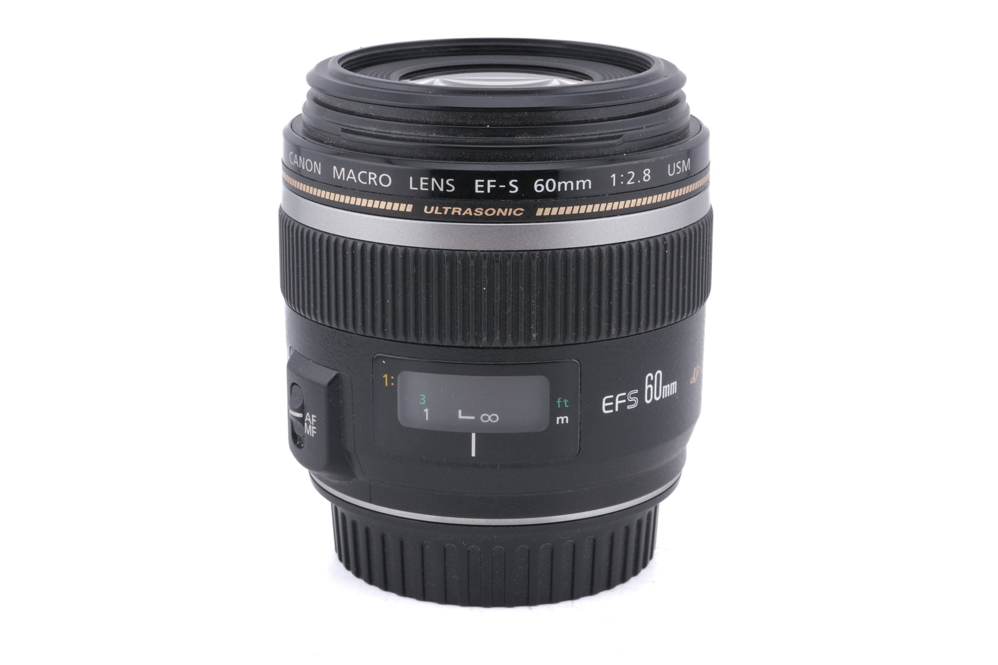 Autofocus telephoto macro lens made for EF-S mount digital SLRs by Canon. It was designed for APS-C-sized sensors and gives the equivalent field of view to a 90mm lens on full frame/35mm. It is capable of 1:1 macro reproduction without extension tubes and uses Canon's ultrasonic motor (USM) for autofocus. Plastic body available in black.