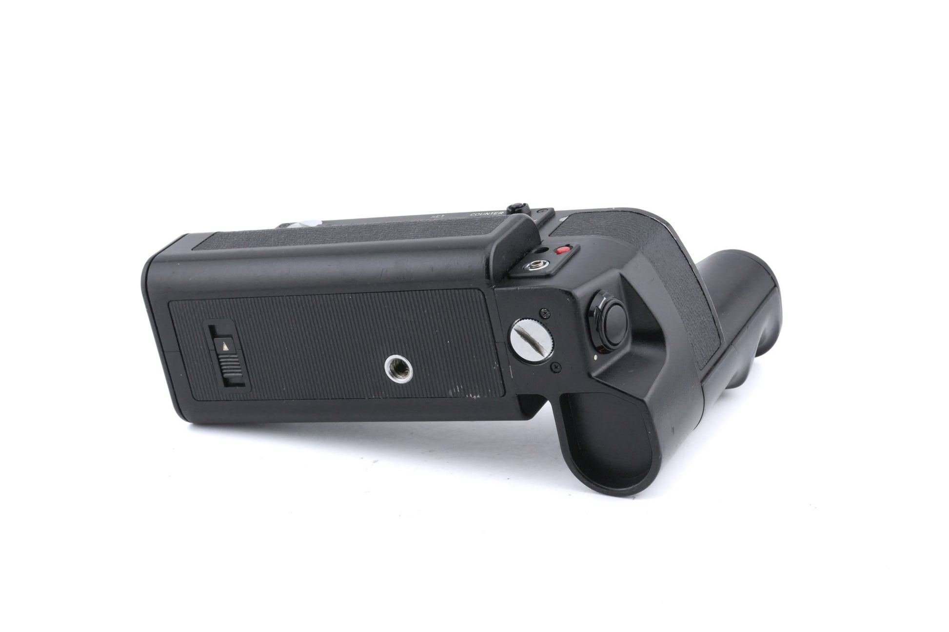 Motor drive made for the Canon New F-1 35mm SLR camera introduced by Canon. It is ideal for shooting fast action. It enables the camera to shoot in shutter-priority AE. Metal and plastic body available in black.