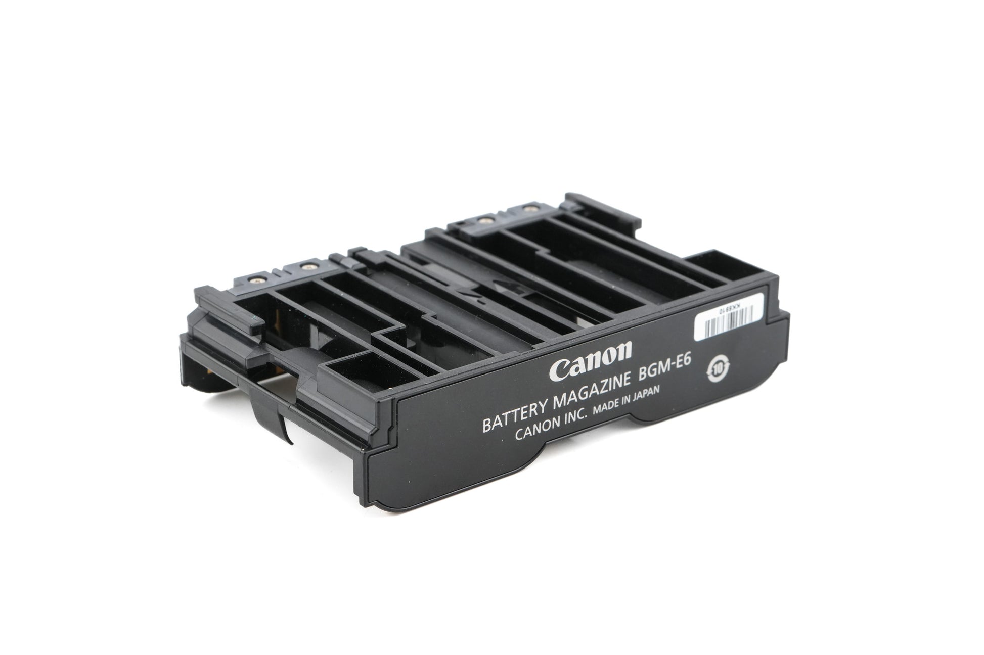 AA battery holder for Canon BG-E6 battery grip. Plastic body available in black.