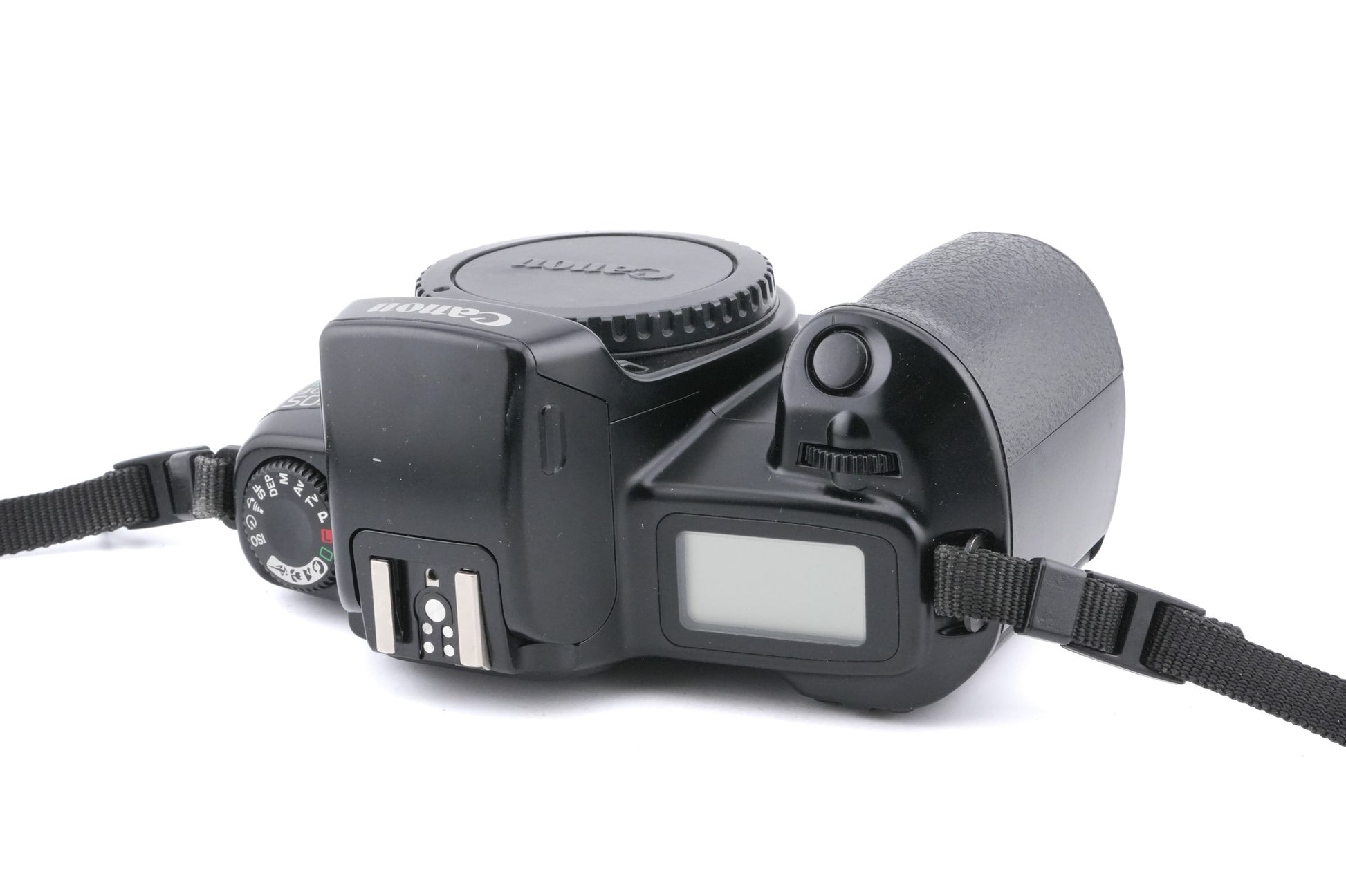 Autofocus EF-mount 35mm SLR camera released by Canon in 1992. It was sold in America under the name Canon EOS Rebel S II. It has a built-in flash. Plastic body available in black.