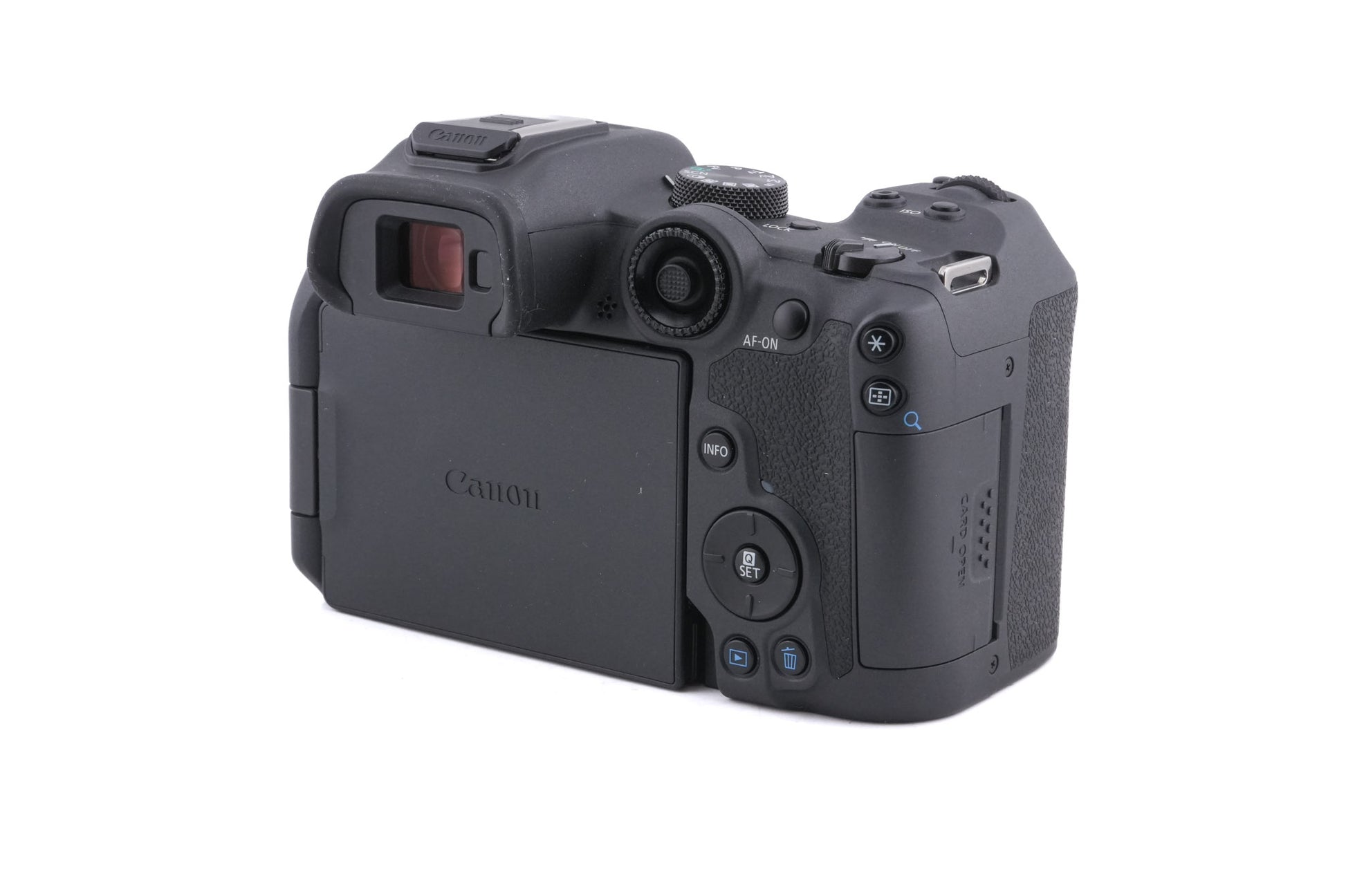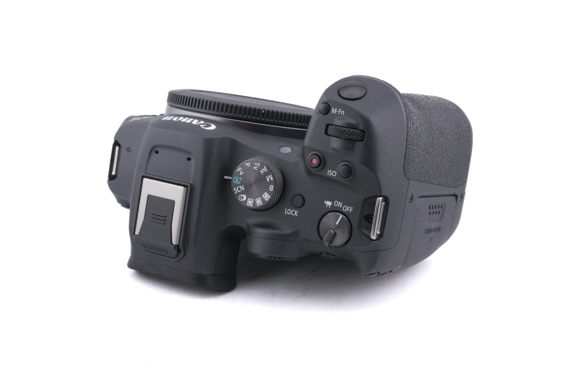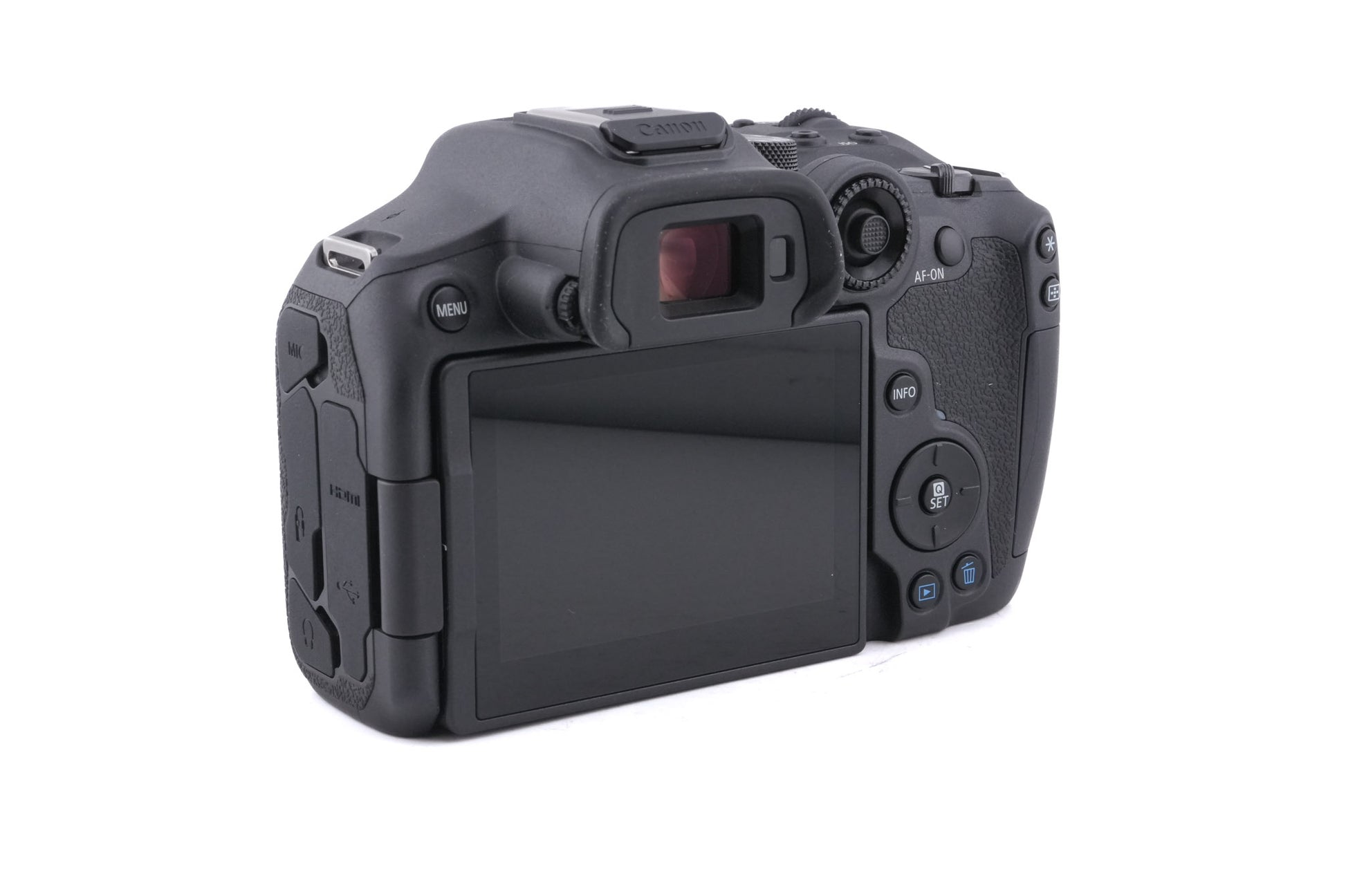 Autofocus RF-S mount digital mirrorless camera released by Canon in 2022. It was positioned as Canon's top-end APS-C mirrorless offering at the time of release. It has 7 stops of in-body image stabilization (IBIS) and can record 10-bit video. It has a 3" fully articulating rear LCD and a weather-sealed body. Metal/plastic body available in black.