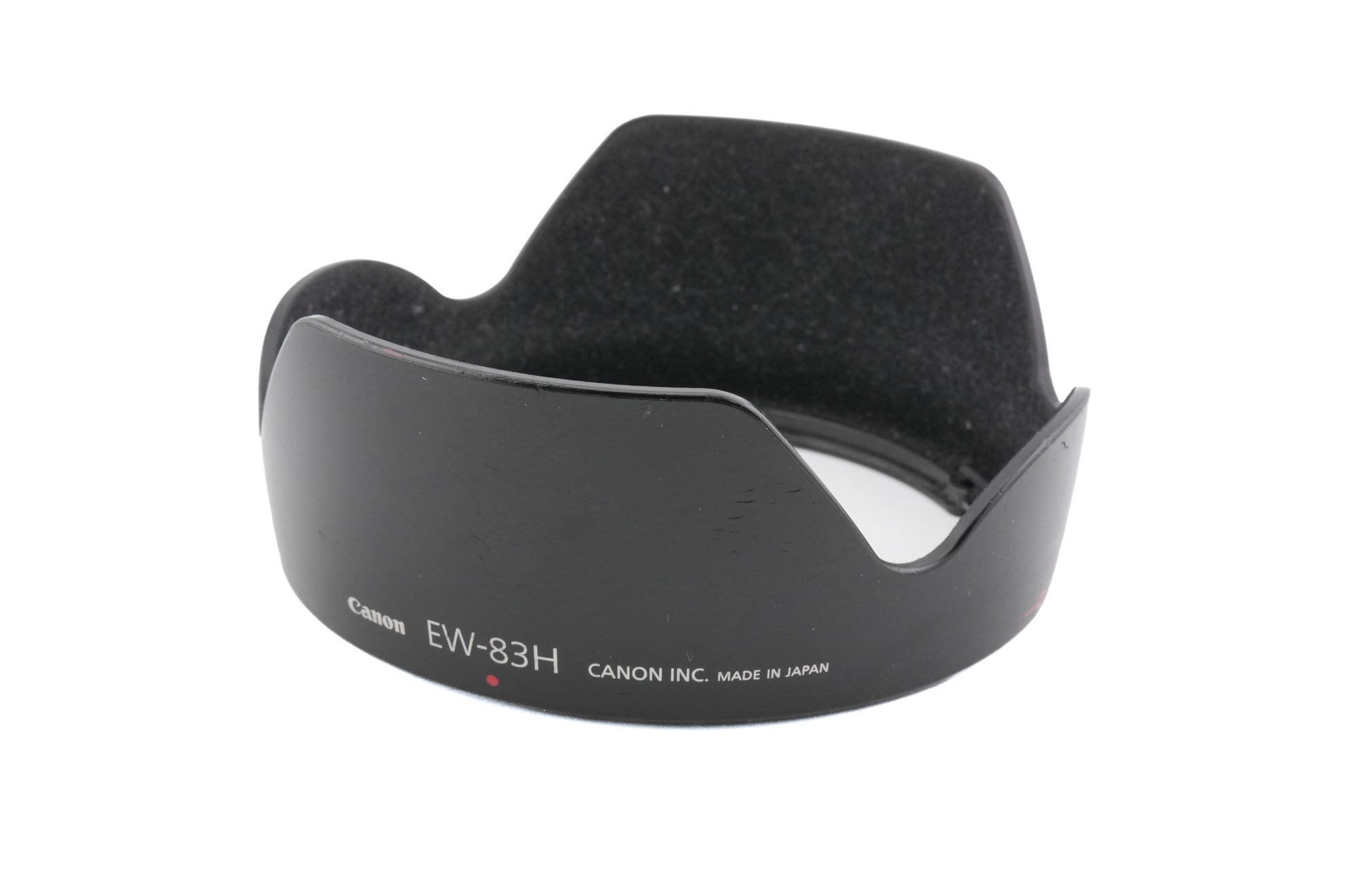 Lens hood for Canon 24-105mm f4 L IS USM. Attaches via a proprietary bayonet. Black plastic construction.