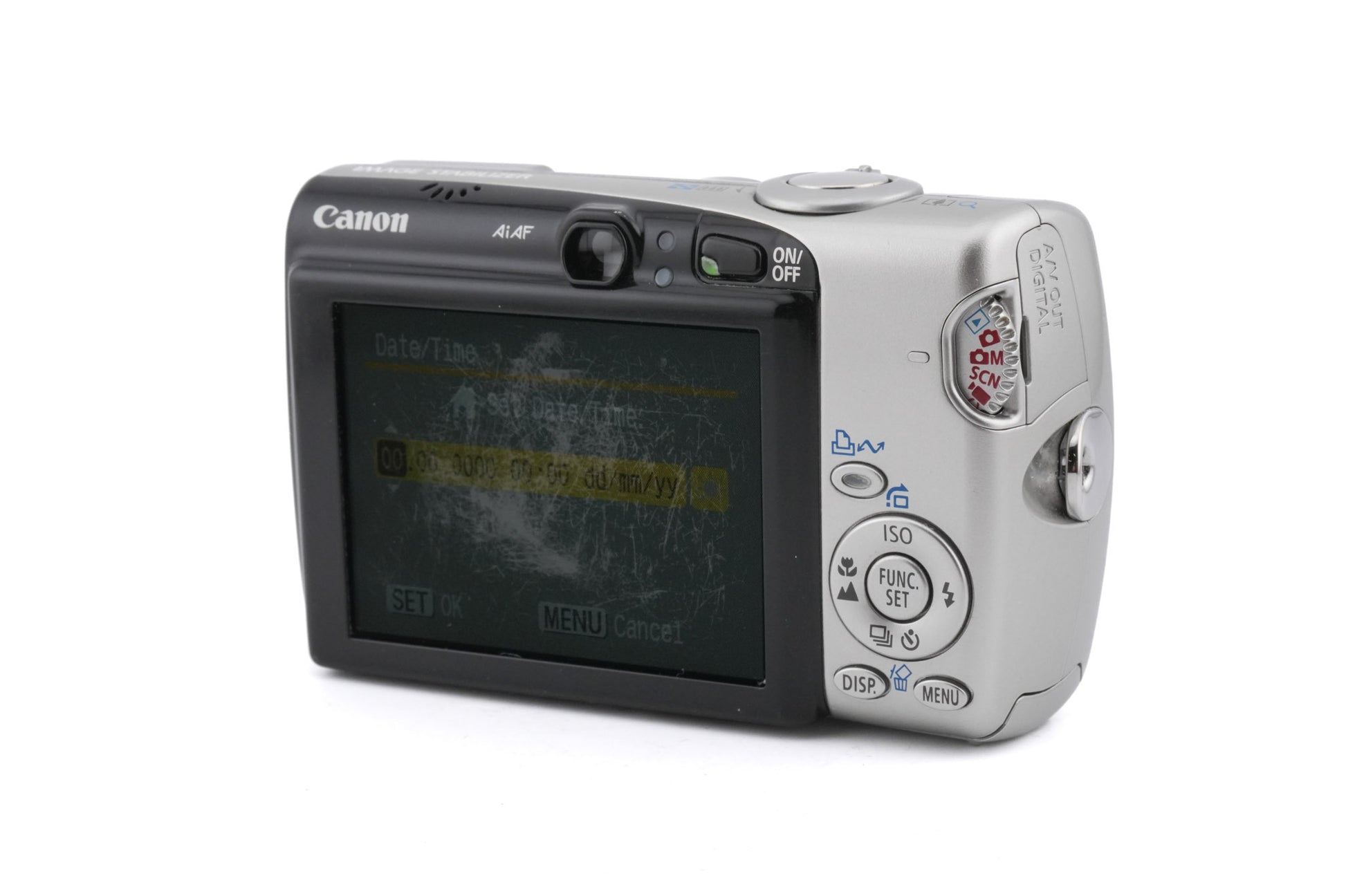 Autofocus compact digital point-and-shoot camera introduced by Canon in 2006. It has a 35-140mm equivalent lens, an optical viewfinder, and a 2.5" rear LCD. It records 640 x 480, 30ps video. Plastic body available in silver.