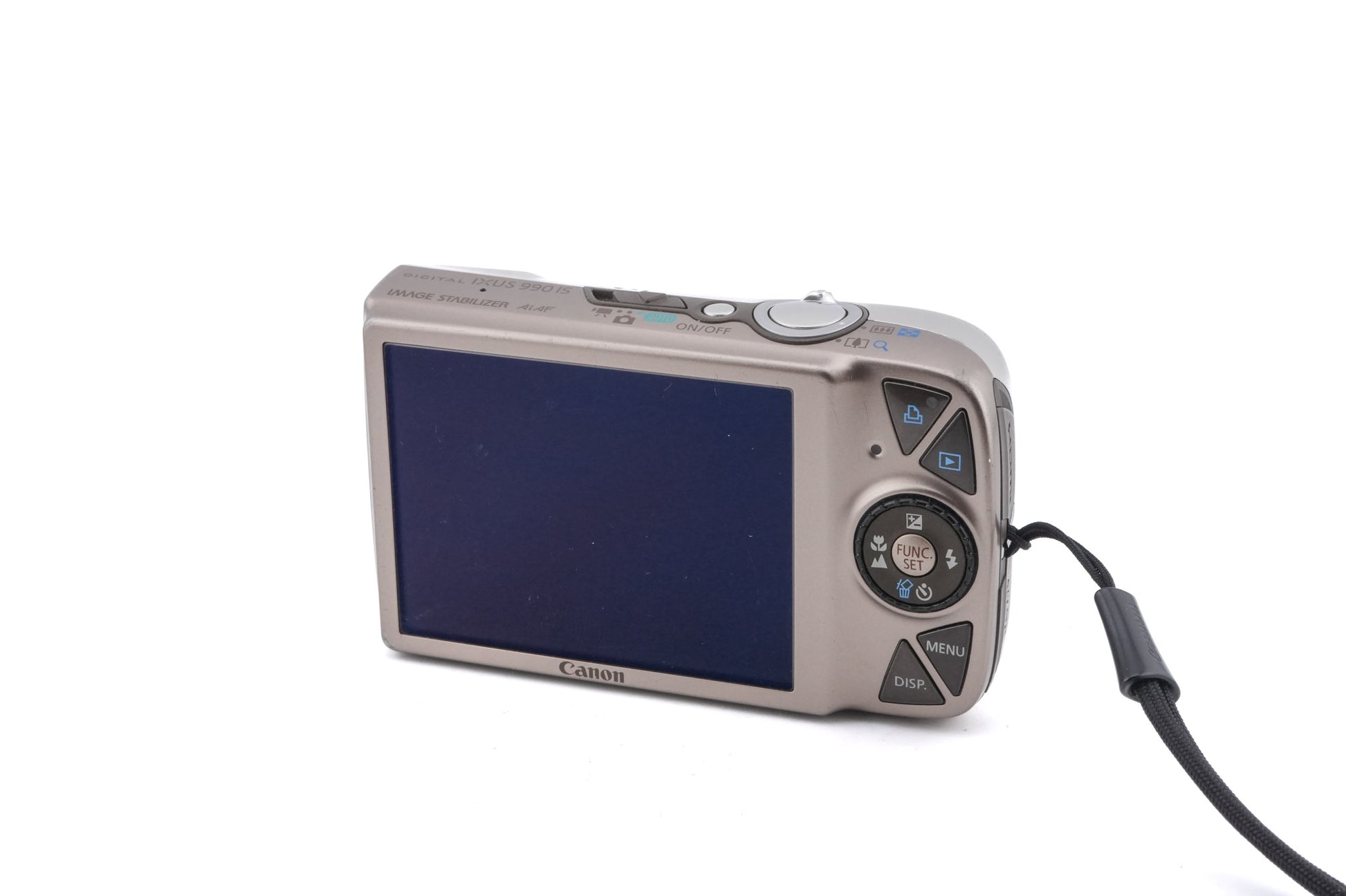 Autofocus digital compact camera released by Canon in 2009. It is also known as the PowerShot SD970 IS. It has image stabilization. The lens gives the equivalent field of view to a 37-185mm lens on full frame / 35mm. Metal body available in light champagne.