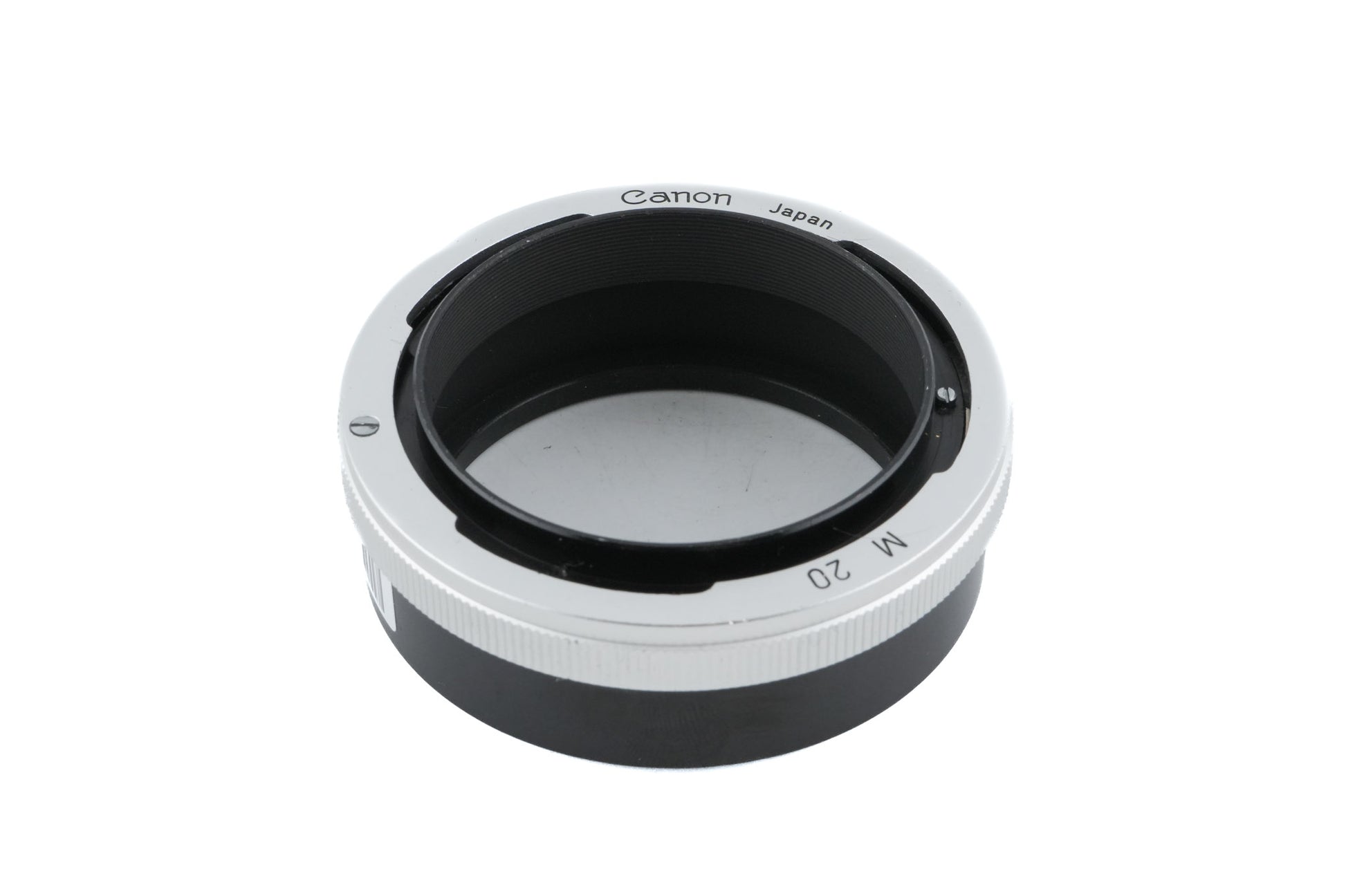 20mm extension tube made for FD-mount 35mm SLR camera and lenses introduced by Canon. This extension tube has no coupling to stop down the lens and uses the older breech-lock style mounting mechanism. Metal body available in black/silver.