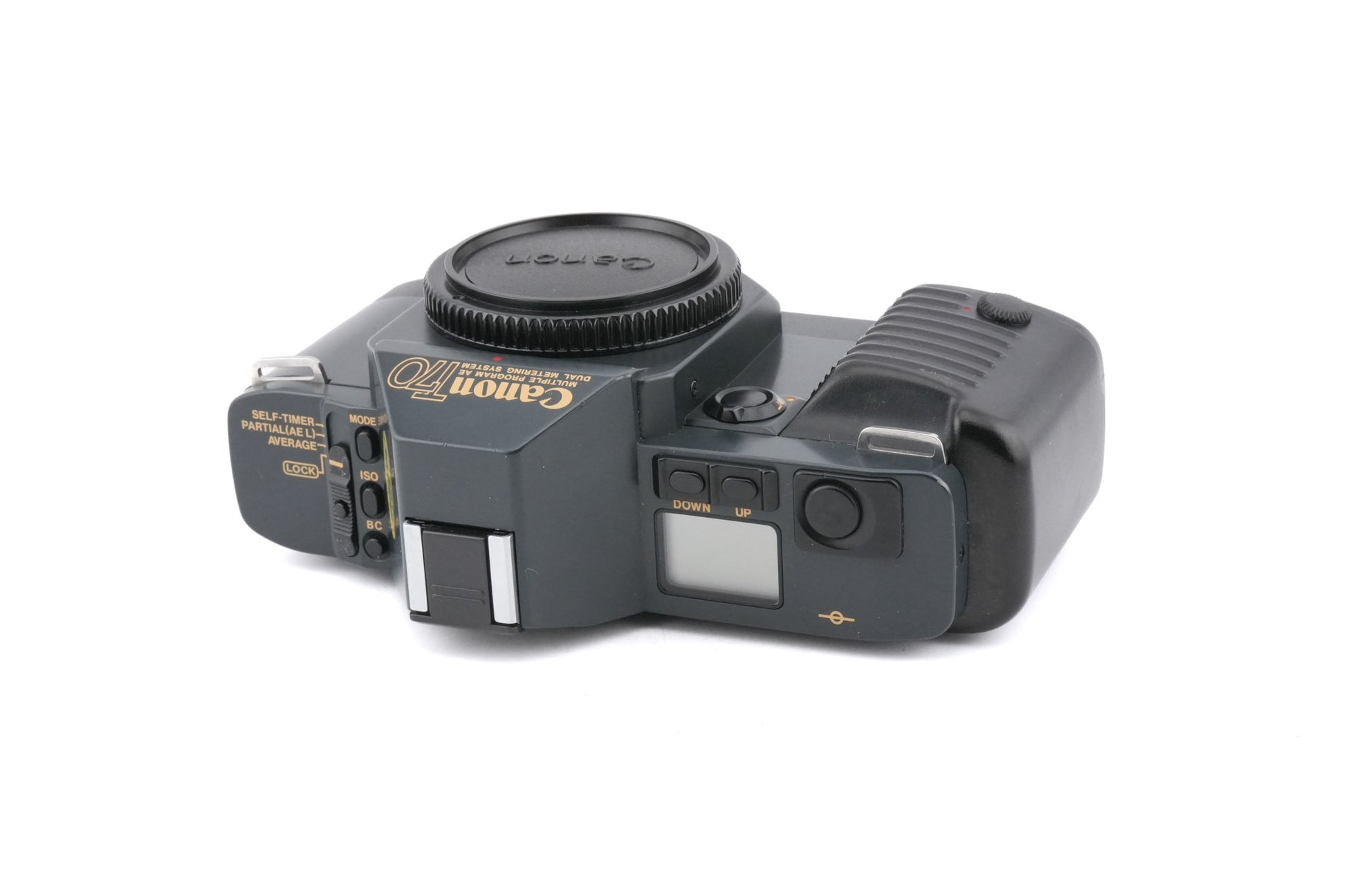 Manual focus FD-mount 35mm SLR released by Canon in 1984. The original cost (69,000 Yen) is equivalent to ~560 Euros in 2024. Plastic body available in dark grey and black.