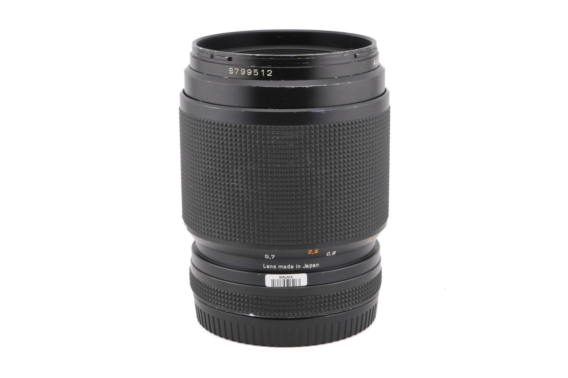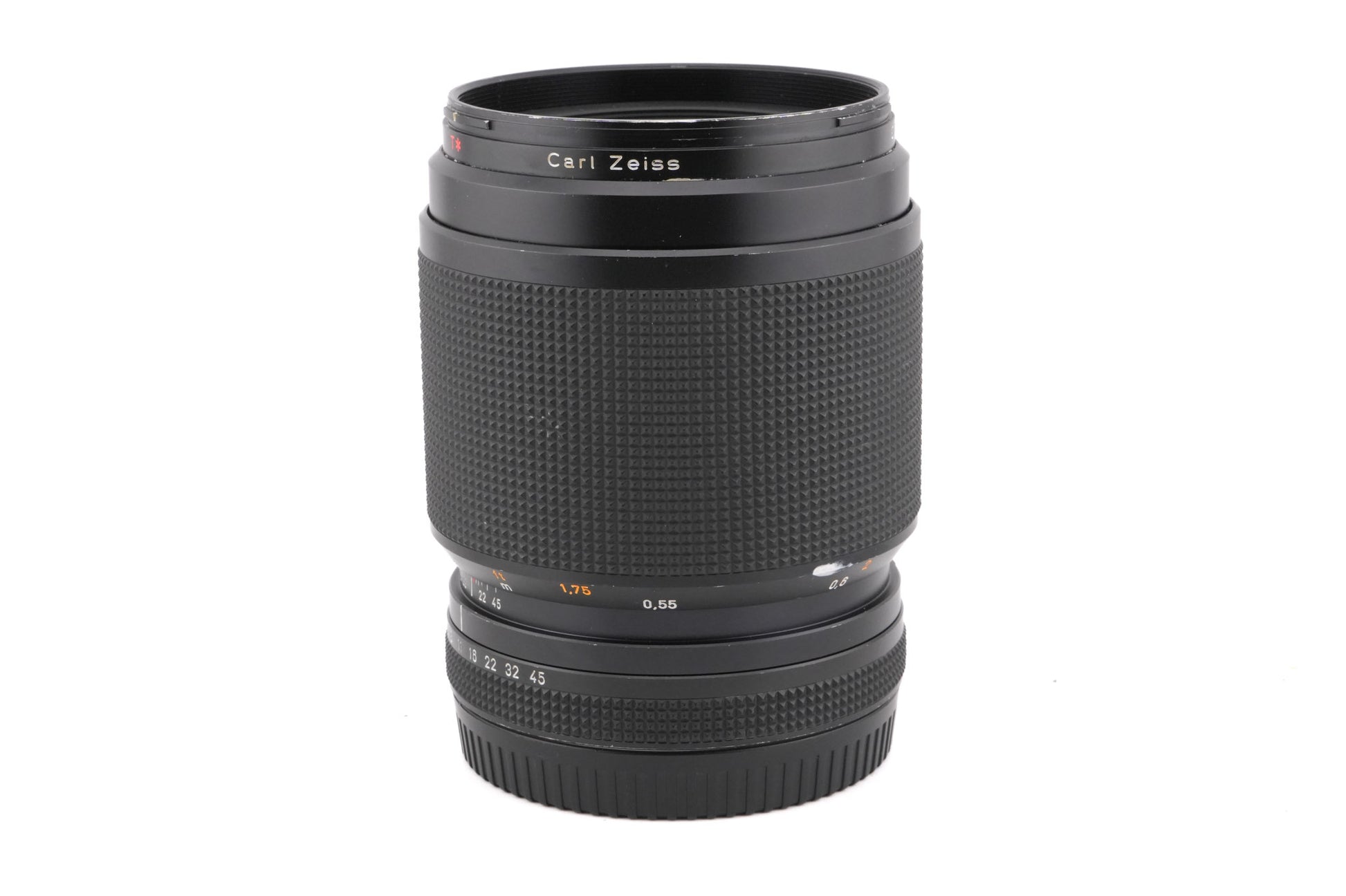 Manual focus makro telephoto lens made for Contax 645 mount medium format cameras by Carl Zeiss. Metal body available in black.
