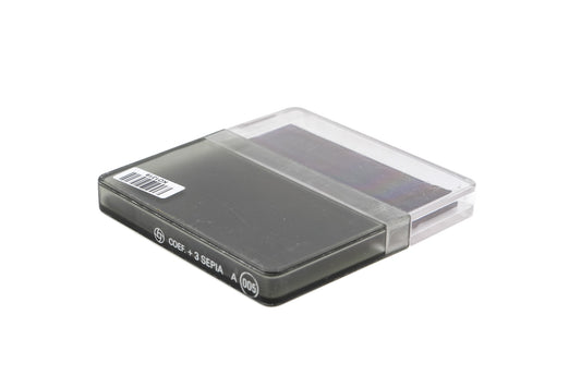 Sepia filter made by Cokin. Part of their A series. It has a dark brown tint. Plastic body available in brown.