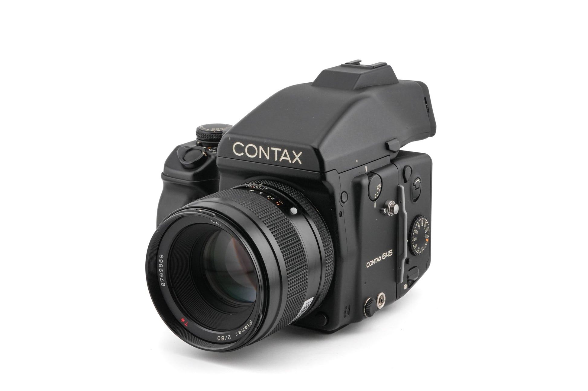 Contax 645 + MFB-1 120/220 Film Back Holder + MF-1 AE Prism Finder + 80mm f2 Planar T*