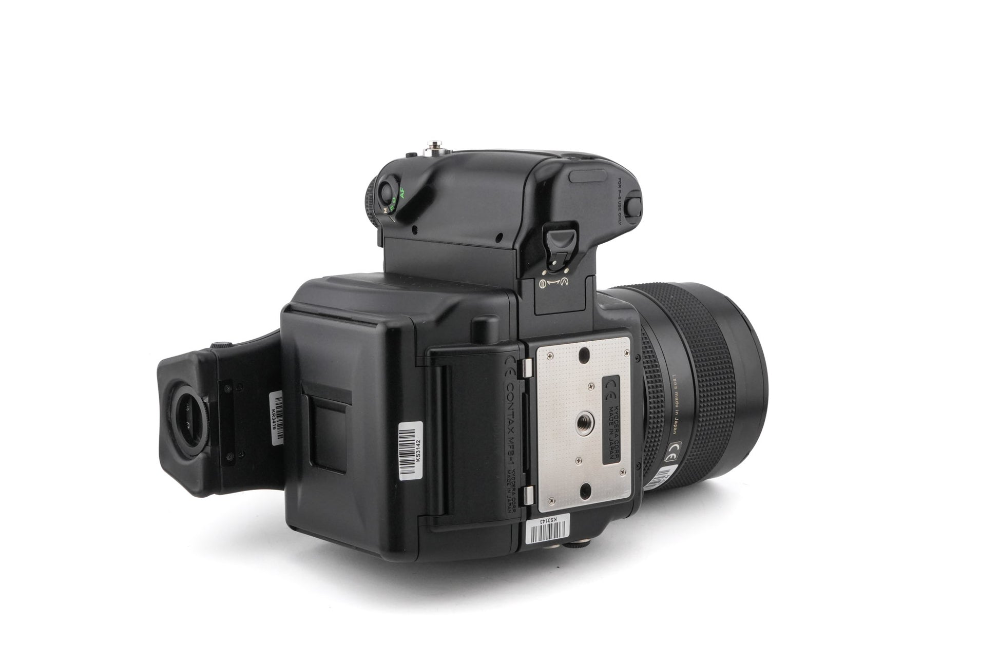 Autofocus 645 mount 120 SLR released by Contax/Kyocera in 1999. Plastic/metal available in black.