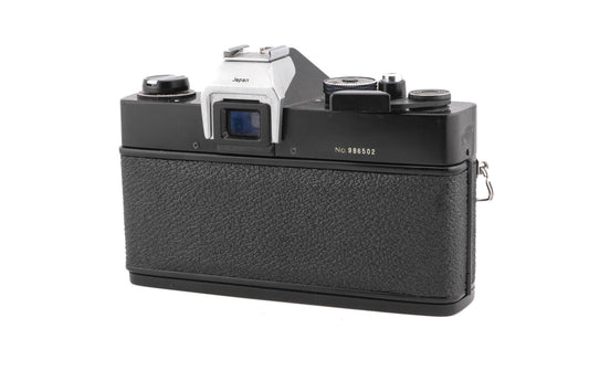 Manual focus 35mm M42-mount SLR by Cosina. Built-in lightmeter and self-timer. Metal body available in silver and black.