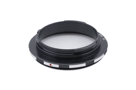 Lens adapter for reverse mounting Minolta MD-mount lenses with 52mm filter threads. Metal body available in different designs.