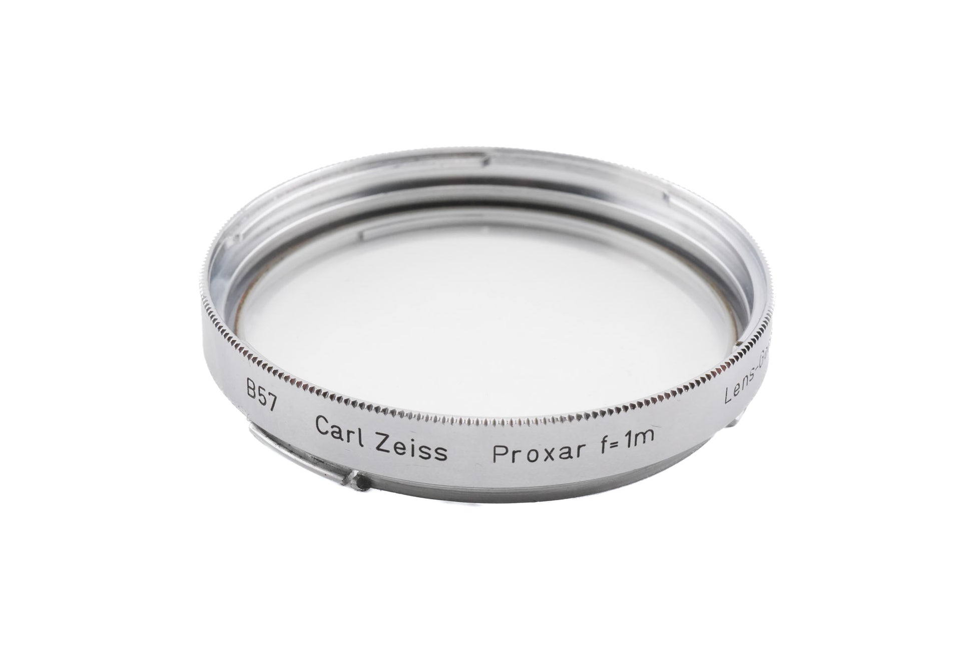 Close-up filter made for all lenses with B50 (B57) filter mounts by Carl Zeiss for the Hasselblad V system. Introduced in 1957. Extends close focus capabilities. It had a chrome finish until 1973, then changed to black from 1974-1981. Marked B57 but fits B50 mounts. Metal body available in black and chrome.