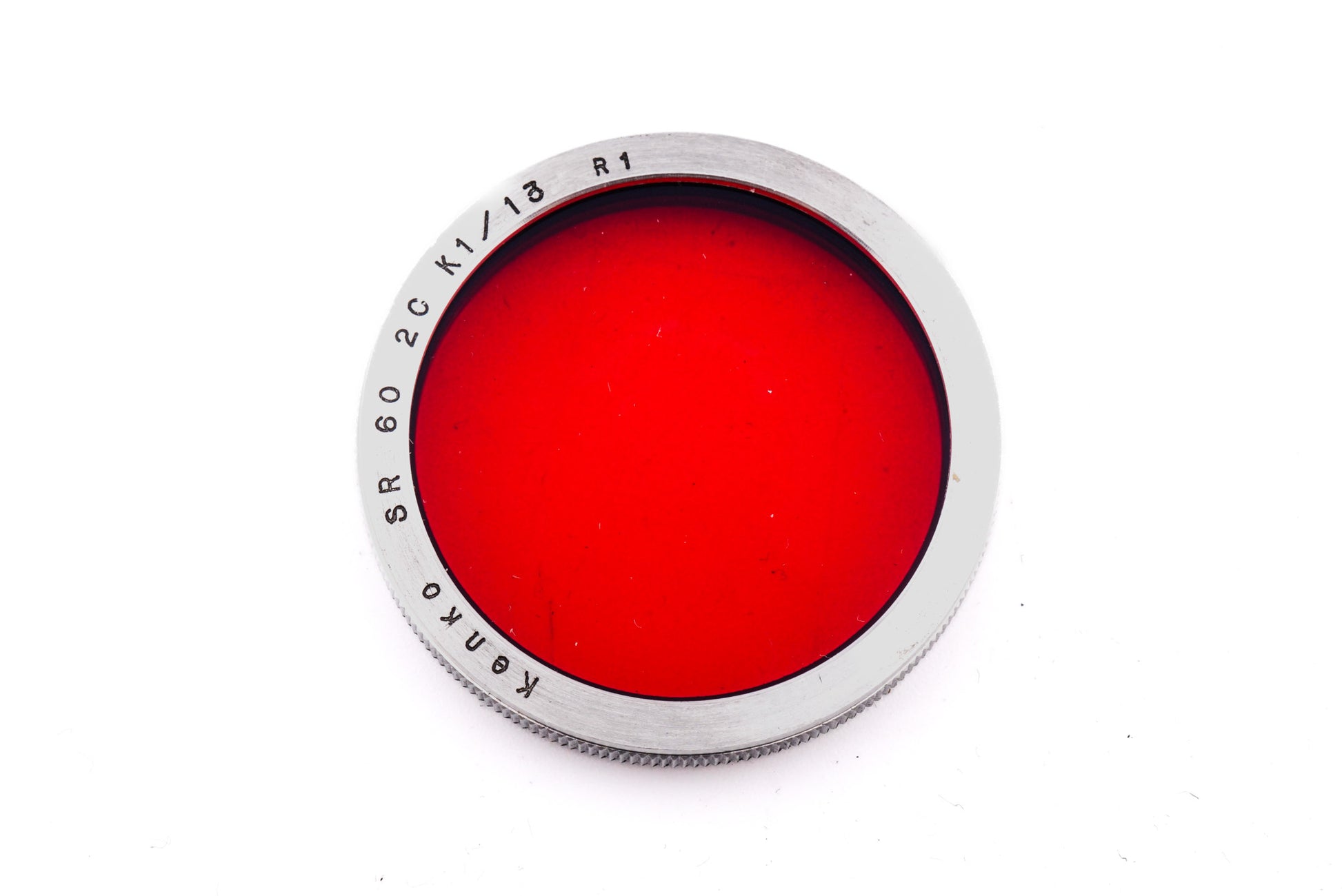 Red filter made by Kenko for TLRs that use Bay 1 accessory bayonets. Enhances contrast in black & white photography. Silver metal construction.