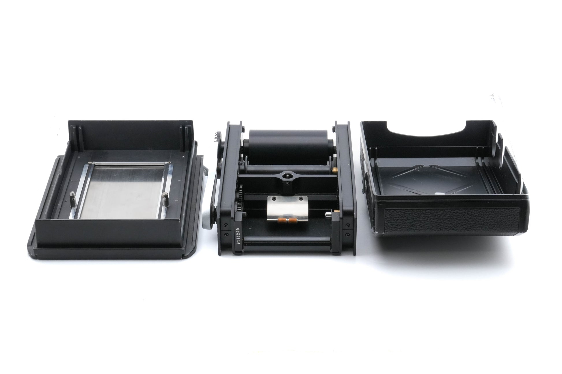 6x12 roll film back made for 4x5 large format cameras by Linhof. Metal body available in black.