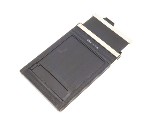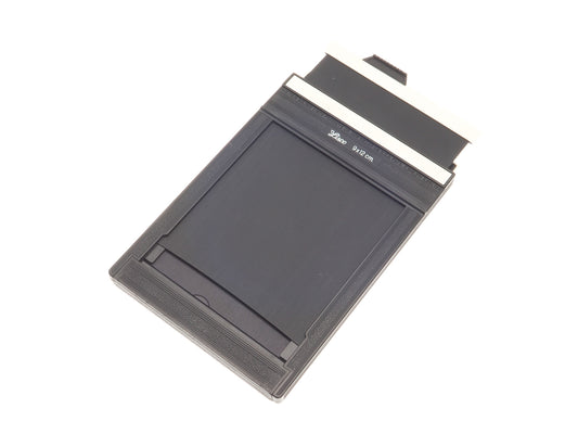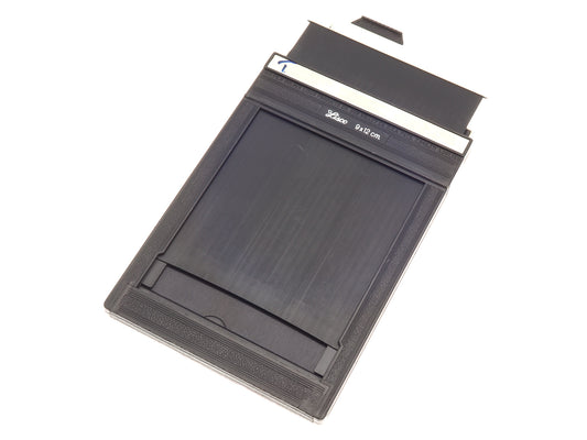 9x12 cm sheet film holder made by Lisco. Each holder can hold two sheets of film, one on each side. Plastic body available in black.