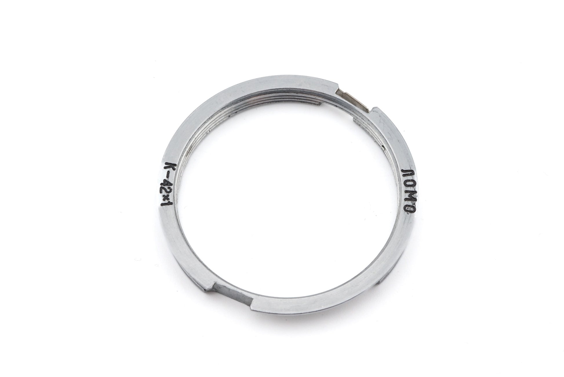 Adapter for mounting M42 lenses on Pentax K cameras, made by LOMO in the Soviet Union. Metal body available in silver.