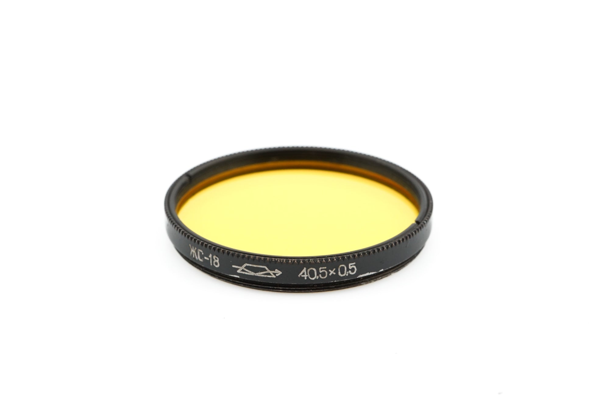 Yellow filter made in the Soviet Union for lenses with 40.5mm filter threads. Metal body available in black.