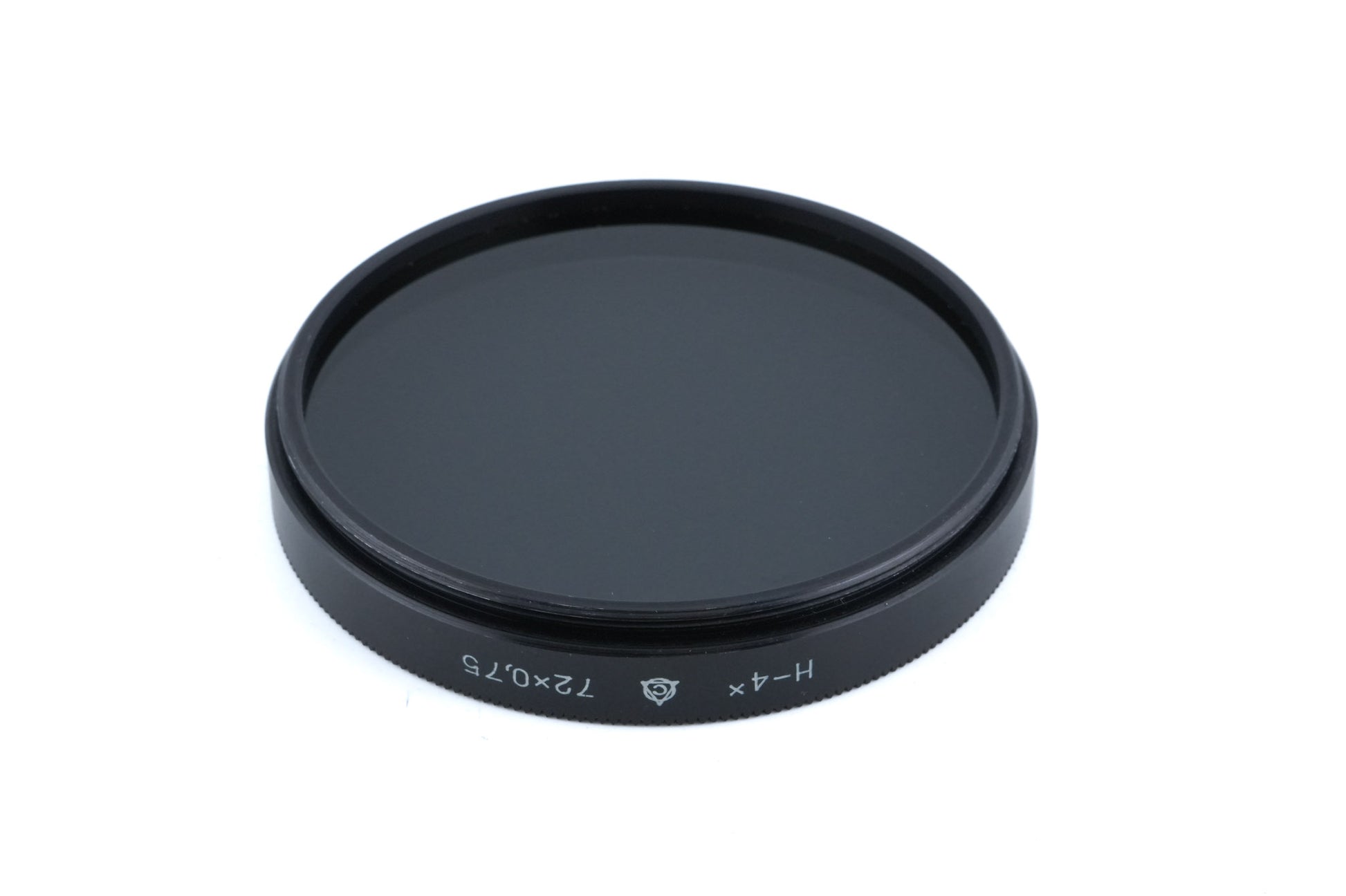 Neutral density filter made for all lenses with 72mm filter threads by LZOS in the Soviet Union. Metal body available in black.