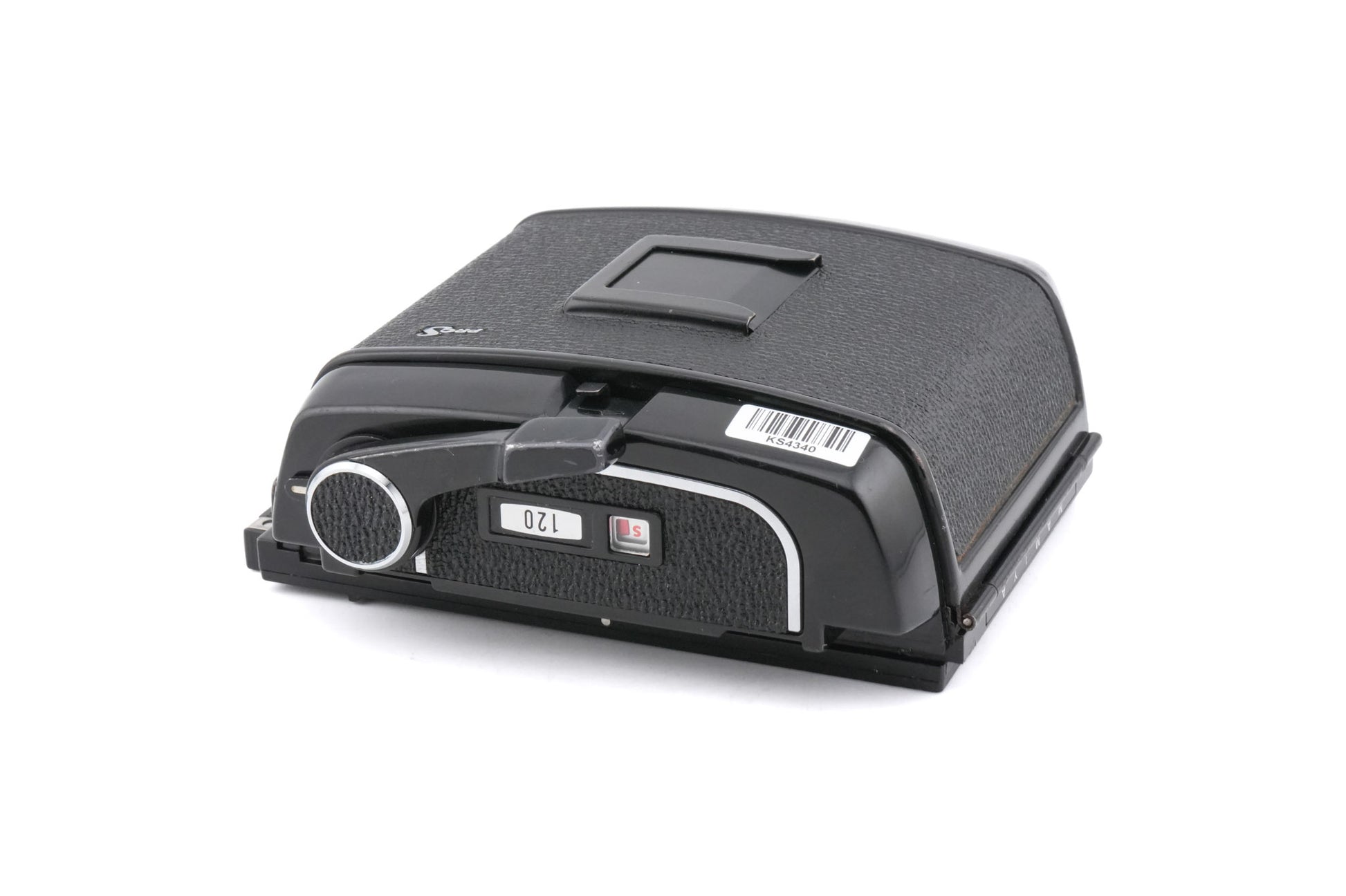 6x7 120-roll film magazine made for the RB67 camera, introduced by Mamiya, released in 1970. Fits 10 6x7 negatives on one roll of 120 film. Plastic and metal body available in black.
