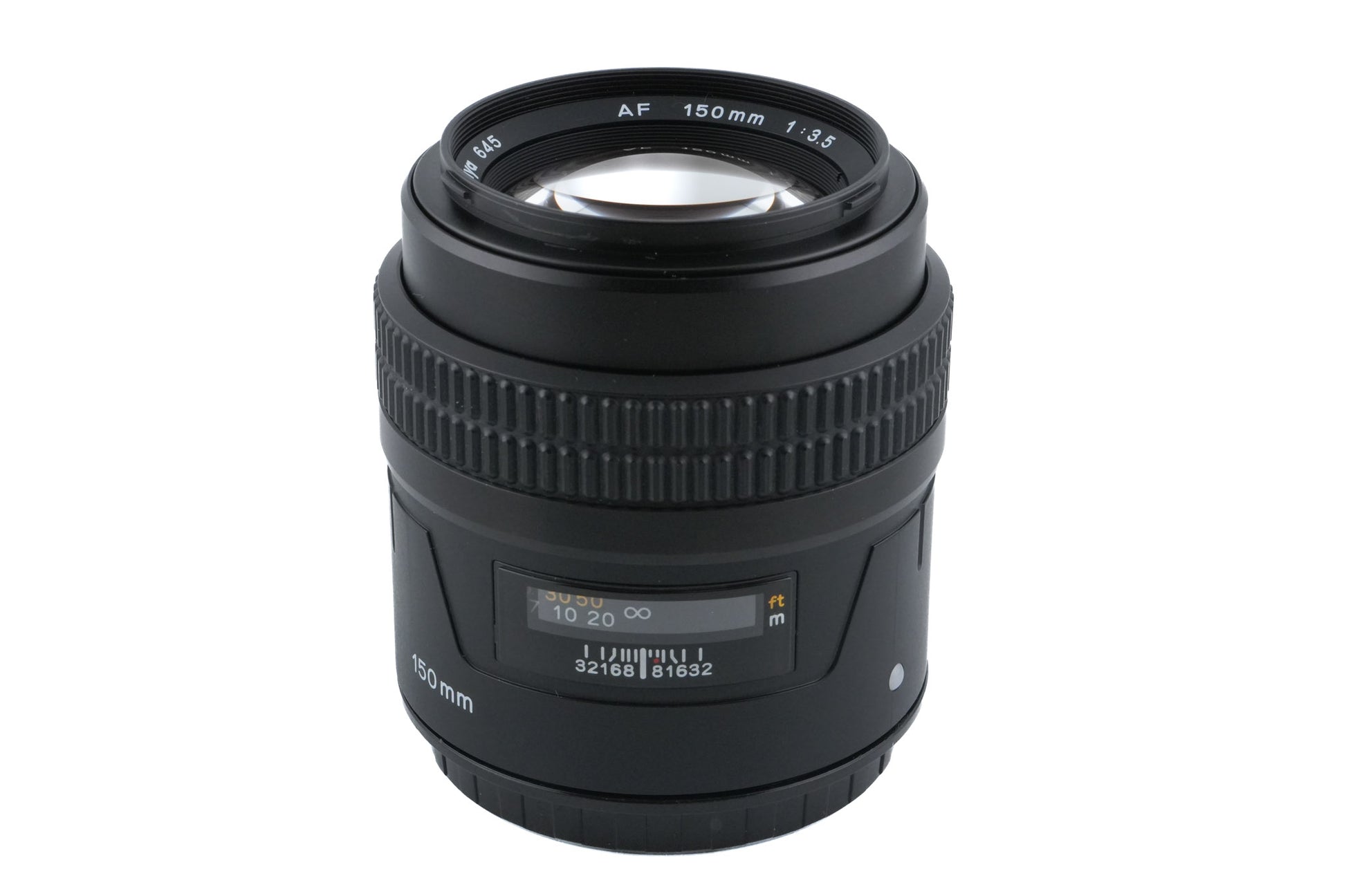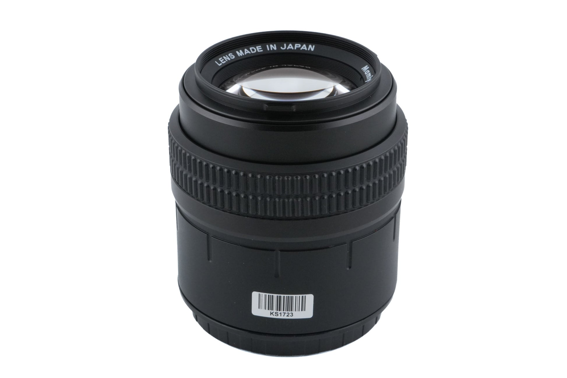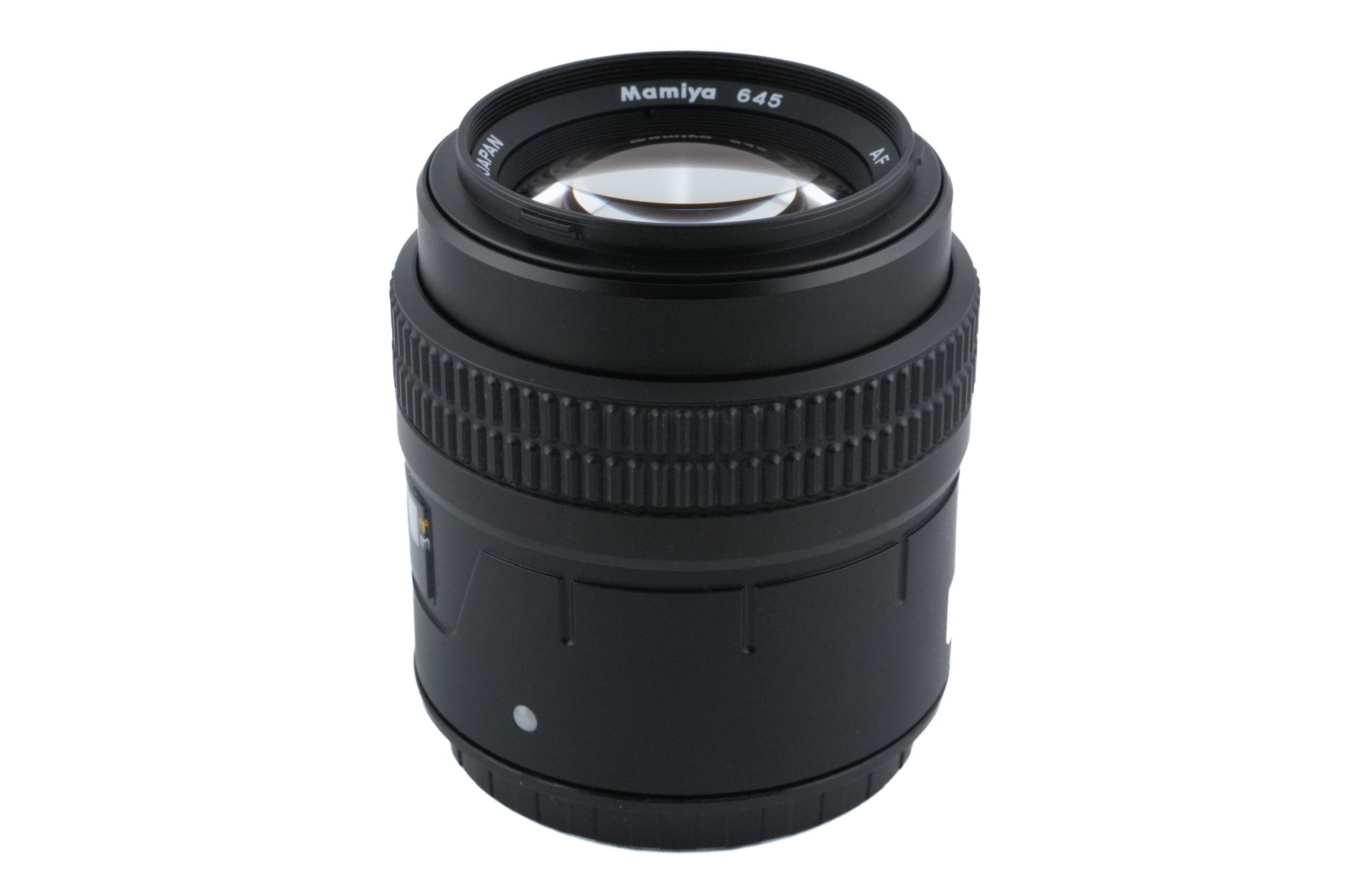 Autofocus telephoto lens made for Mamiya 645 AF cameras introduced by Mamiya. It gives the equivalent field of view to a 93mm lens on full frame/35mm. it has a clutch for switching between manual and autofocus. Metal and plastic body available in black.
