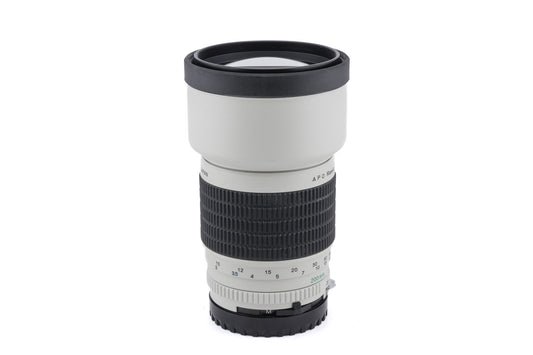 Manual focus telephoto lens made for 645 mount 120 SLRs by Mamiya. It gives the equivalent field of view to a 125mm lens on full frame/35mm. The lens features apochromatic (APO) lens elements designed to minimize chromatic aberrations. Metal body available in beige.