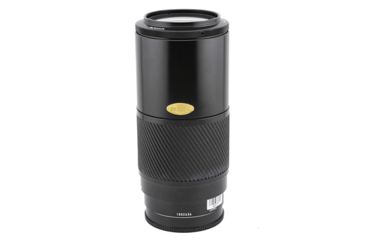 Autofocus telephoto zoom lens made for AF-mount 35mm SLRs introduced by Minolta starting in 1985. It is affectionately referred to as the "beercan" lens because of its wide, non-tapering design. Plastic body available in black.