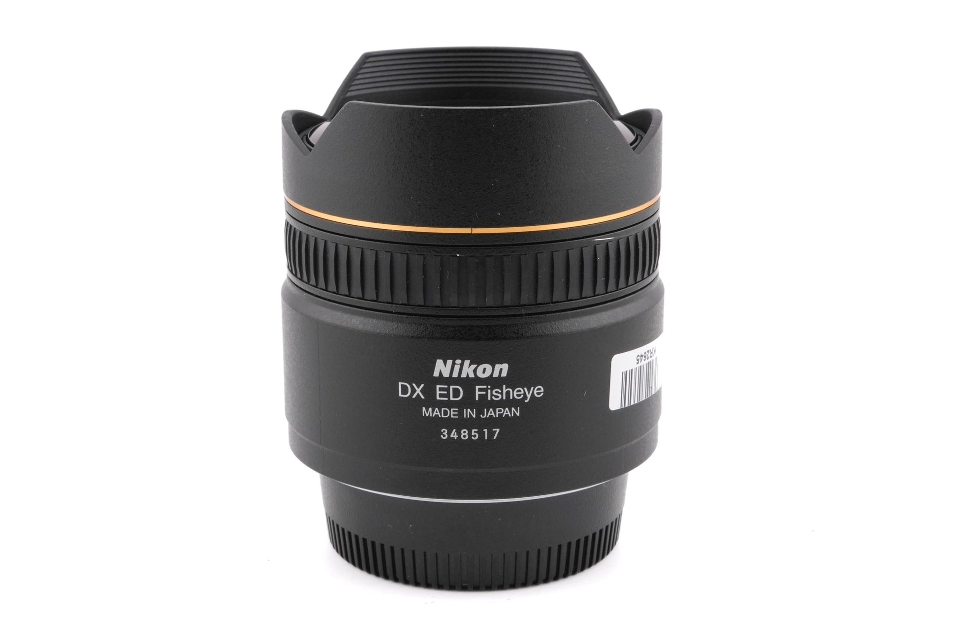 Autofocus fisheye lens made for DX-mount digital SLR cameras by Nikon. It is designed for APS-C-sized sensors and gives the equivalent field of view to a 16mm lens on full frame/35mm. Plastic & metal body available in black.