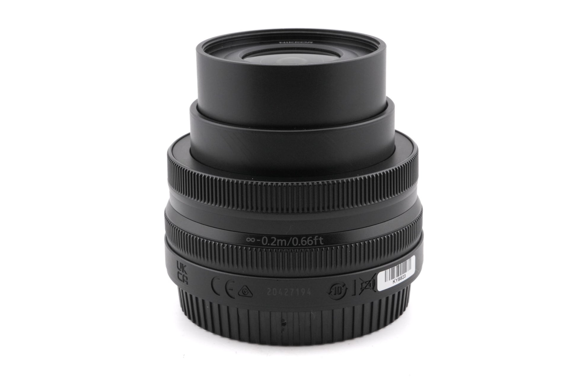 Autofocus compact general purpose zoom lens made for Z-mount mirrorless cameras with DX-sized crop sensors introduced by Nikon. The lens features aspherical and extra-low dispersion glass elements and vibration reduction. Plastic body in black or silver finish.