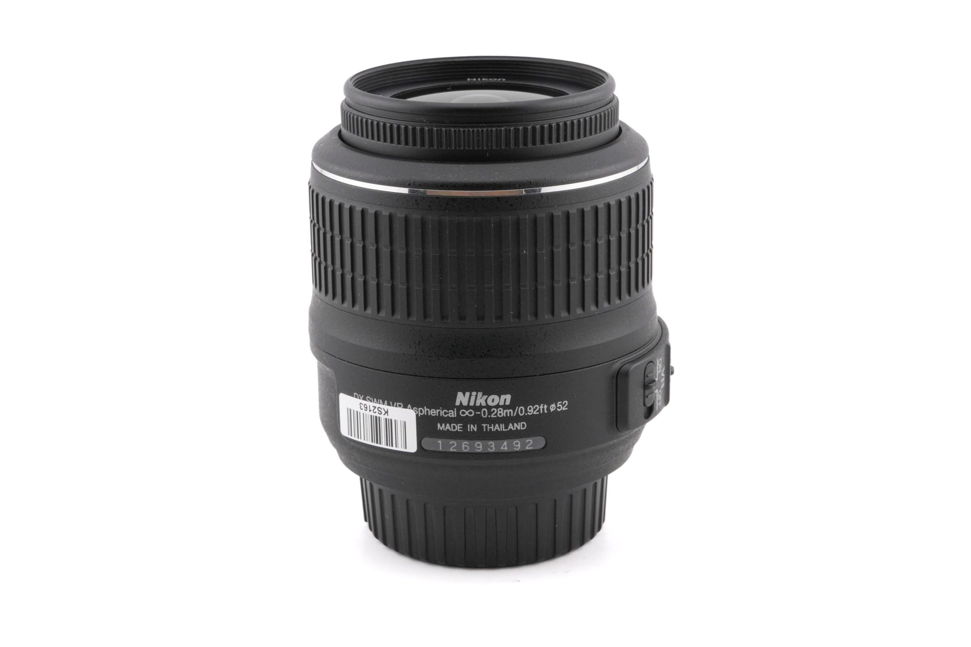 Autofocus normal zoom lens made for DX-mount DSLRs by Nikon. The lens has Vibration Reduction (VR) for more stable shots in low-light conditions. Plastic body available in black.