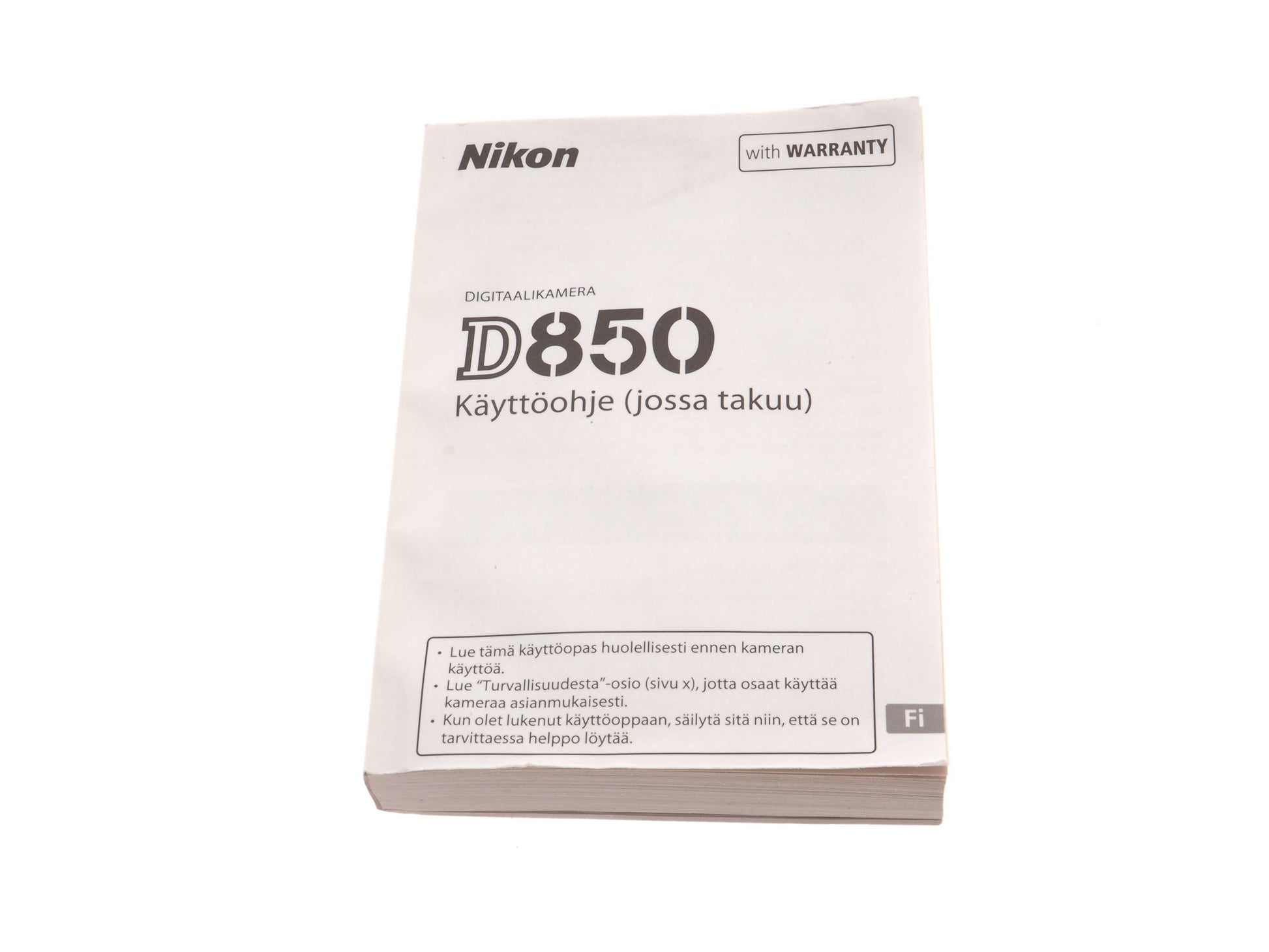 Instruction manual for Nikon D850 camera. Paper booklet.